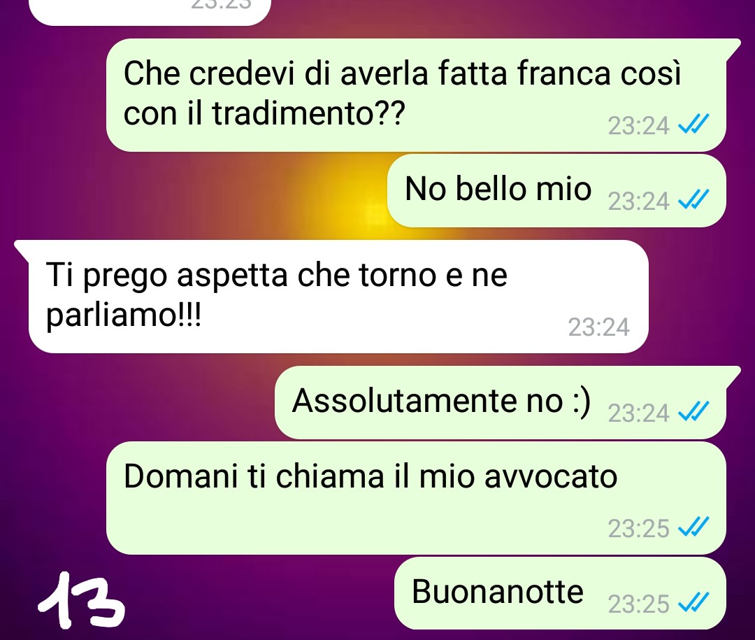 Nella chat che ha deciso di condividere, si può leggere la proposta che ha fatto al compagno: una via alternativa, forse inusuale, ma per lei potenzialmente valida per affrontare e superare quanto accaduto. Il contenuto dei messaggi mostra chiaramente anche la reazione del marito, lasciando emergere dinamiche e risposte che aiutano a comprendere la complessità della situazione vissuta dalla nostra amica.