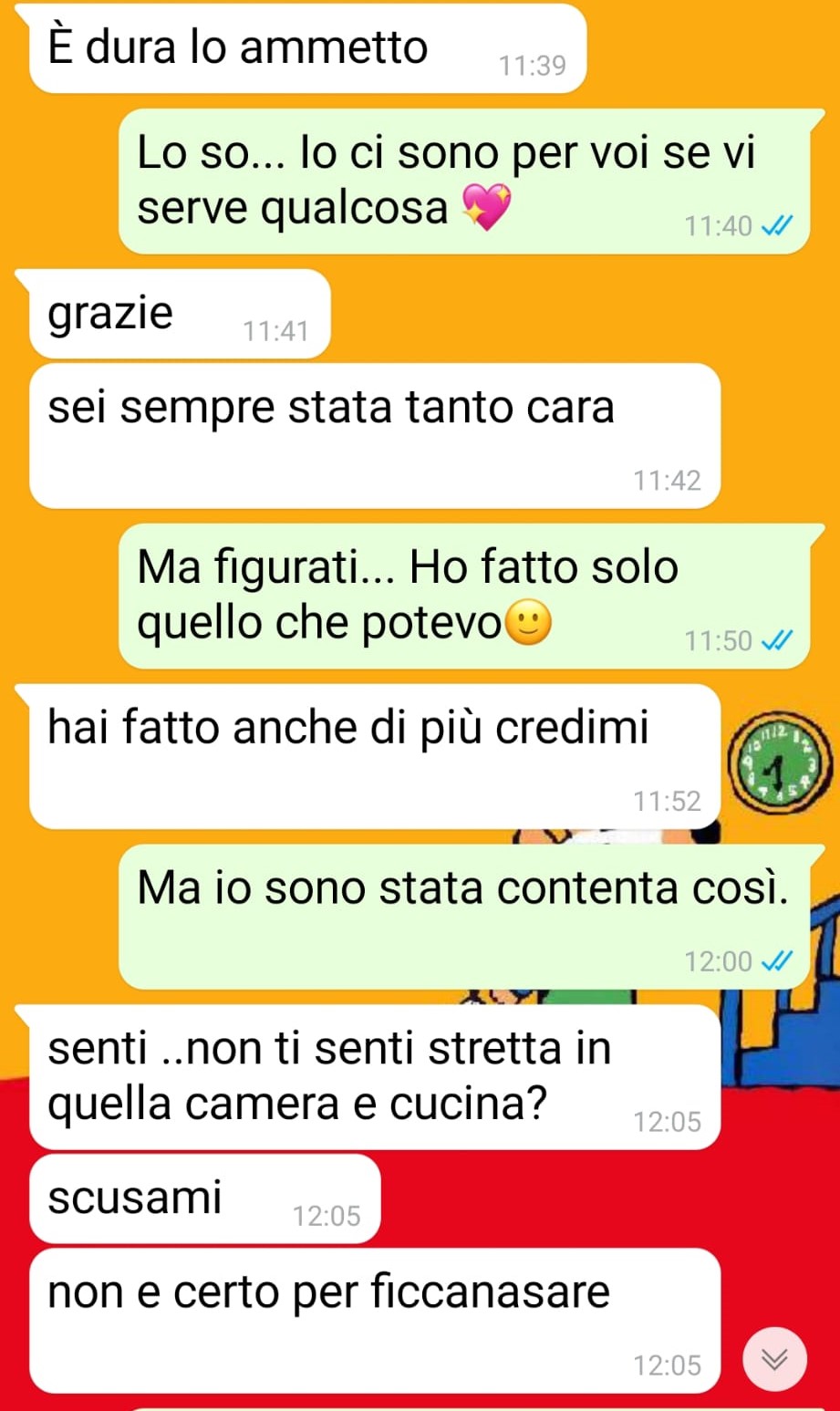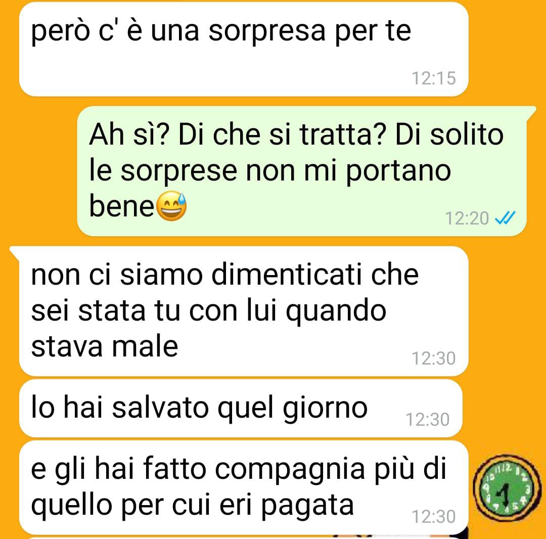 Qualche tempo dopo la sua morte, Mariangela, che stranamente non sentivo da un po’, mi aveva scritto. Ma non mi aspettavo certo una sorpresa simile…Ora stiamo bene, io e Alessia. Ci siamo riprese e devo tutto a questa meravigliosa famiglia che mi ha fatto di nuovo credere nel genere umano.