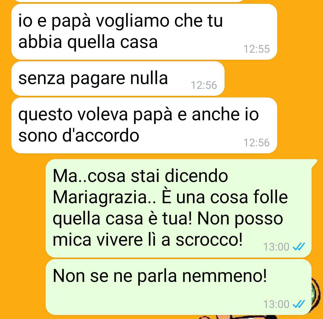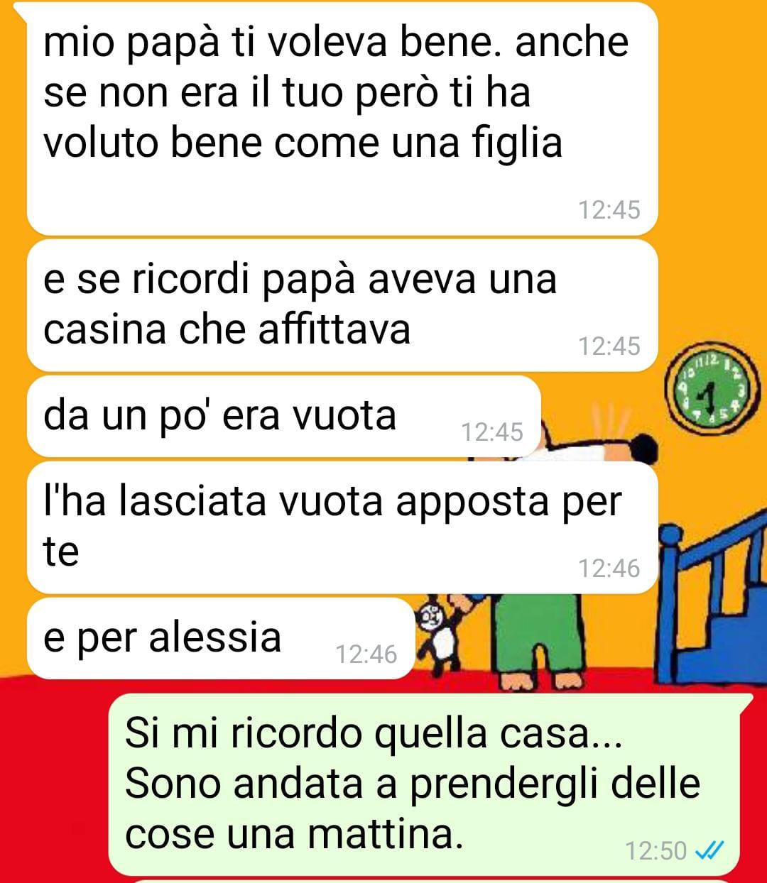 Non potendo contare sull’aiuto dei genitori, ormai venuti a mancare, la nostra follower ha potuto ricevere solo un sostegno parziale da parte della sorella, che, pur volenterosa, non era in grado di coprire il peso dei debiti lasciati. Per evitare di perdere l’unico immobile di famiglia, ha accettato l’eredità e si è vista costretta a vendere la casa grande con giardino, trasferendosi in una piccola abitazione insieme alla sua bambina, Alessia.