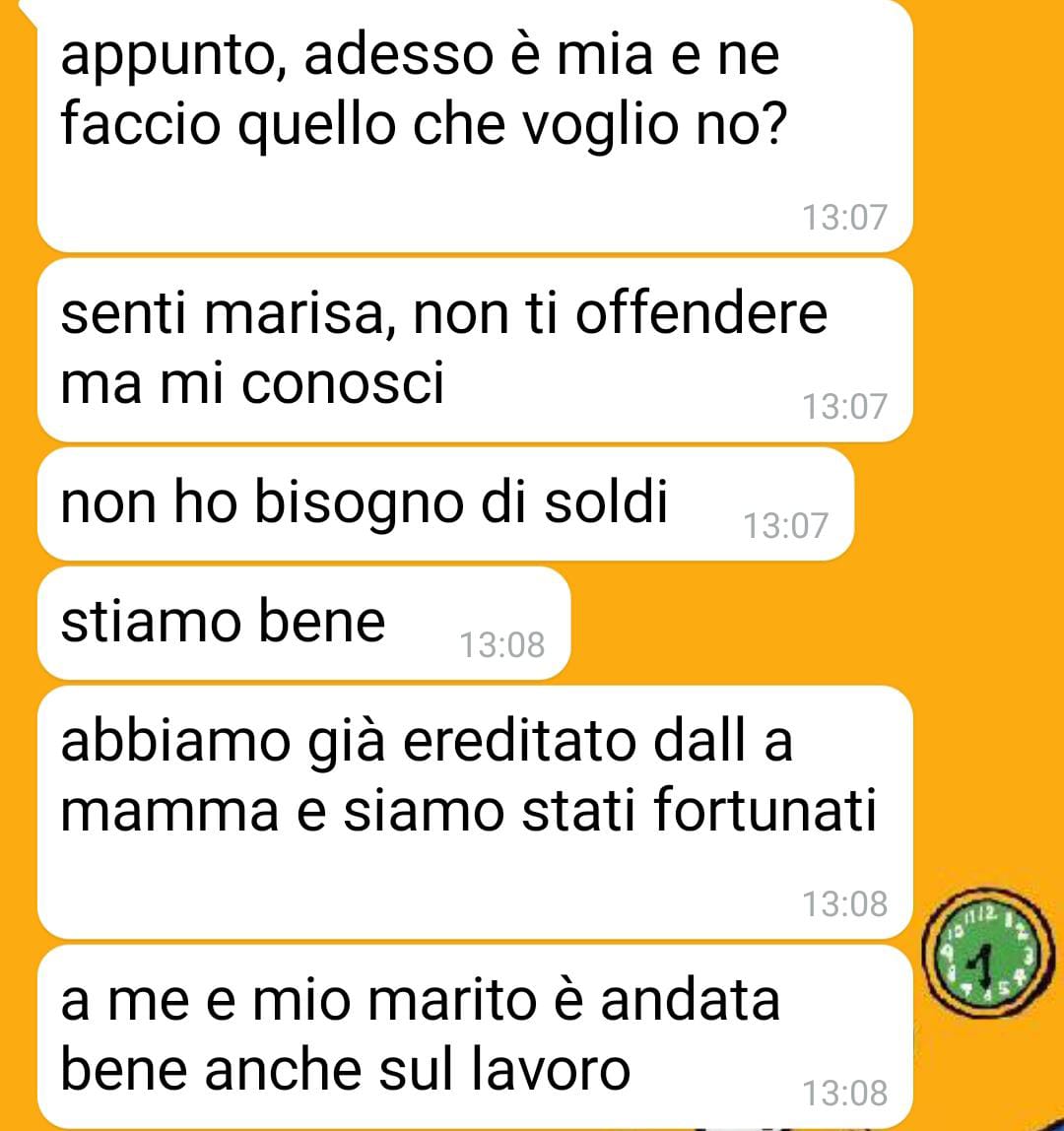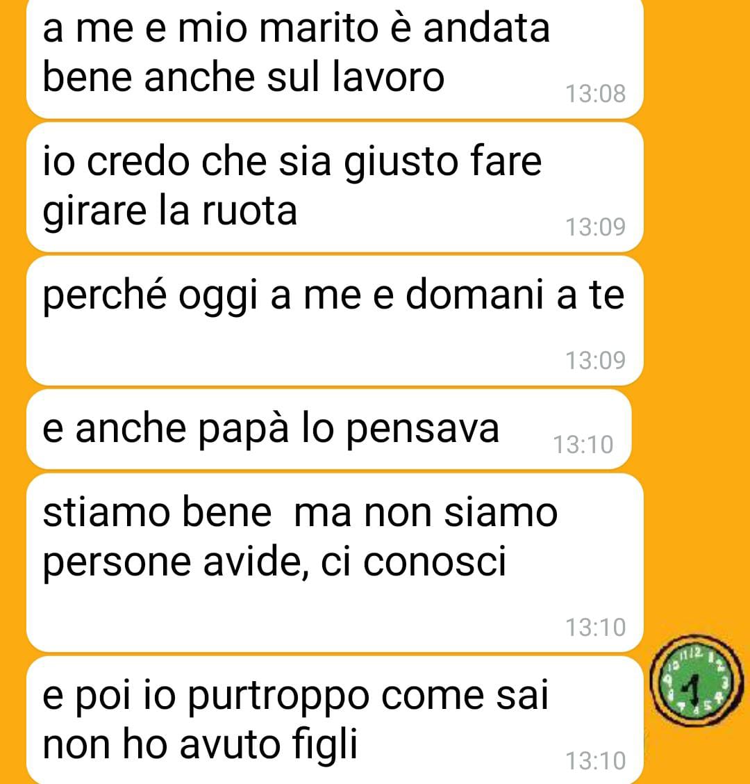 Grazie a quel supporto costante, è riuscita a saldare gran parte dei debiti. Anche vivendo ancora in una casetta minuscola, si sentiva finalmente serena. Quando il signor Giancarlo è venuto a mancare, ha provato un dolore profondo per la perdita di una persona che l’aveva accolta come una di famiglia.