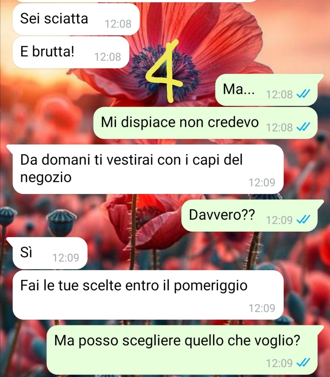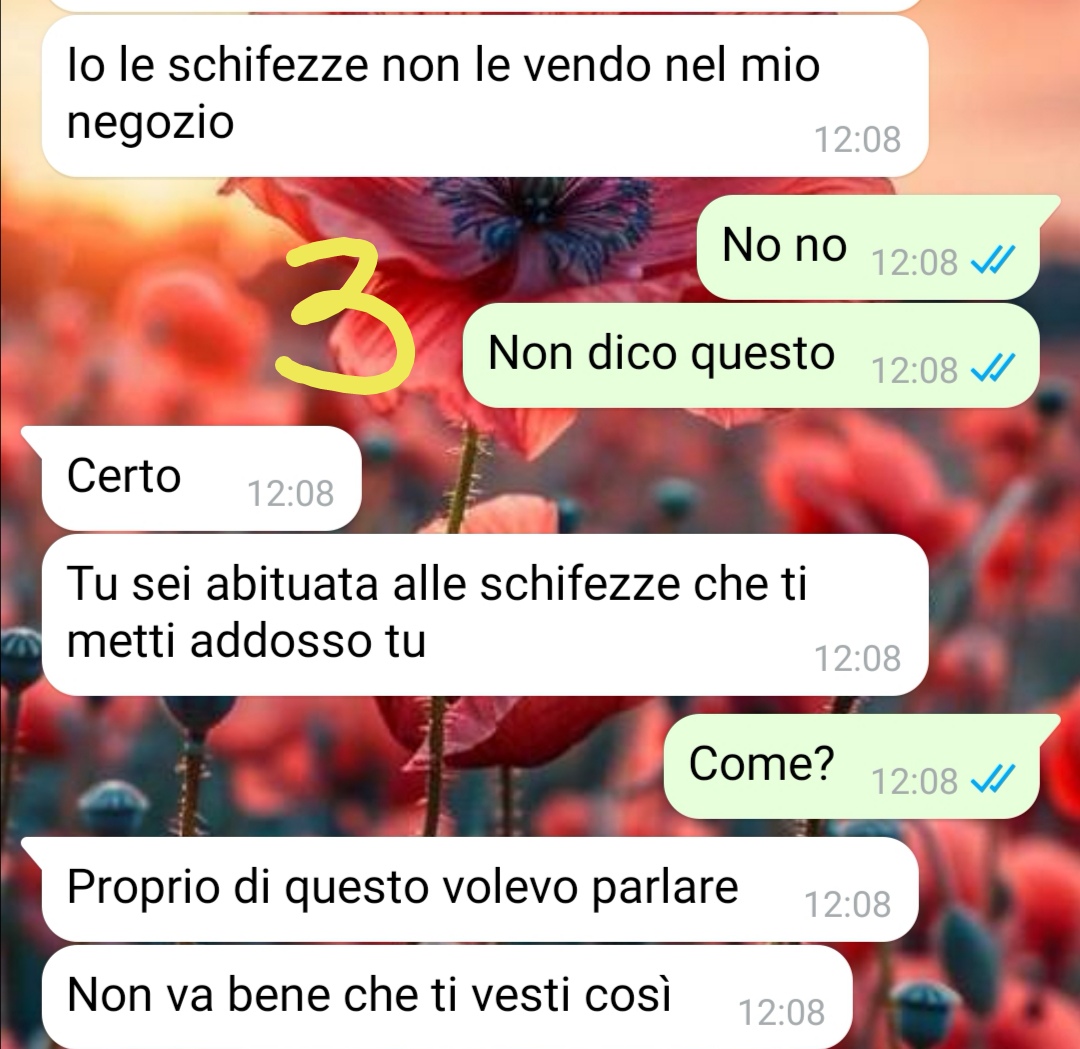 Mi chiamo Benedetta e ho 21 anni. Dopo un paio d’anni di università ho cominciato a cercare un lavoro per non pesare sulle spalle dei miei genitori e ho risposto a un annuncio di un negozio di abbigliamento della mia città. Sono stata presa e ho cominciato a lavorare come commessa. In negozio ci siamo solo io e la titolare, che appunto cercava qualcuno che le desse una mano. Io all’inizio ero entusiasta, mi è sempre piaciuto quel mondo, ma ben presto purtroppo mi sono ritrovata a dover far fronte ogni giorno ad un bel problema. I soldi mi servono e ho sempre cercato di far buon viso a cattivo gioco, di buttare giù, anche perché capisco che si debba fare un po’ di gavetta nella vita e io sono giovane. Non volevo mollare al primo colpo. Un giorno però succede una cosa che è come la goccia che davvero è difficile da buttar giù ancora una volta. Anche se ci provo con tutta me stessa. La conversazione che leggerete è avvenuta con la mia capa e credo sia giusto divulgare ciò che accade a tanti, troppi, di noi giovani che cerchiamo solo di diventare autonomi!