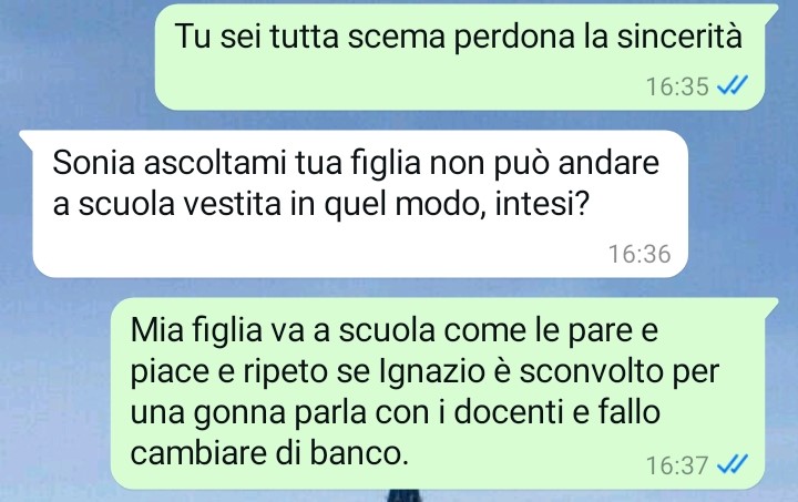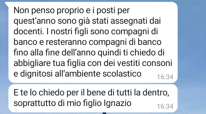Secondo quanto racconta la follower, però, non tutti sembrano condividere la stessa opinione. Nel suo messaggio spiega infatti di aver ricevuto poco prima un messaggio da parte della madre del compagno di banco della figlia. Il nostro fan racconta che quelle parole l’hanno colta completamente di sorpresa. La nostra amica non entra subito nei dettagli del contenuto, ma fa capire che il messaggio ricevuto l’ha lasciata molto perplessa e turbata.