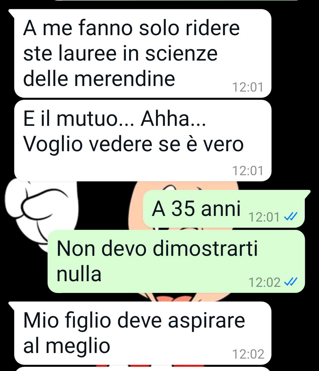 Di fronte a questa situazione, la follower riflette su come sia necessario confrontarsi con persone che spesso fanno parte della famiglia e con cui si è costretti ad avere rapporti. Non potendo eliminare magicamente le persone problematiche, come scherzosamente immagina con un laser che le faccia evaporare, la nostra amica comprende che l’unica strada percorribile è quella del dialogo, per quanto difficile possa essere.