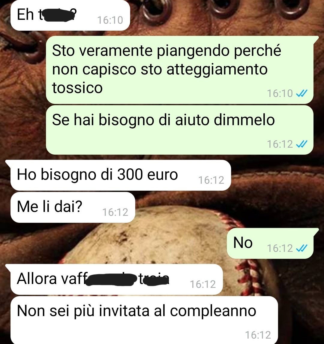 Ciò che l’ha colpita maggiormente è stato il modo in cui, dopo tanto tempo, l’amico ha ripreso i contatti: non per un saluto o per rivedersi, ma per avanzare delle richieste che Giulia definisce “assurde”, lasciandola senza parole e profondamente amareggiata.