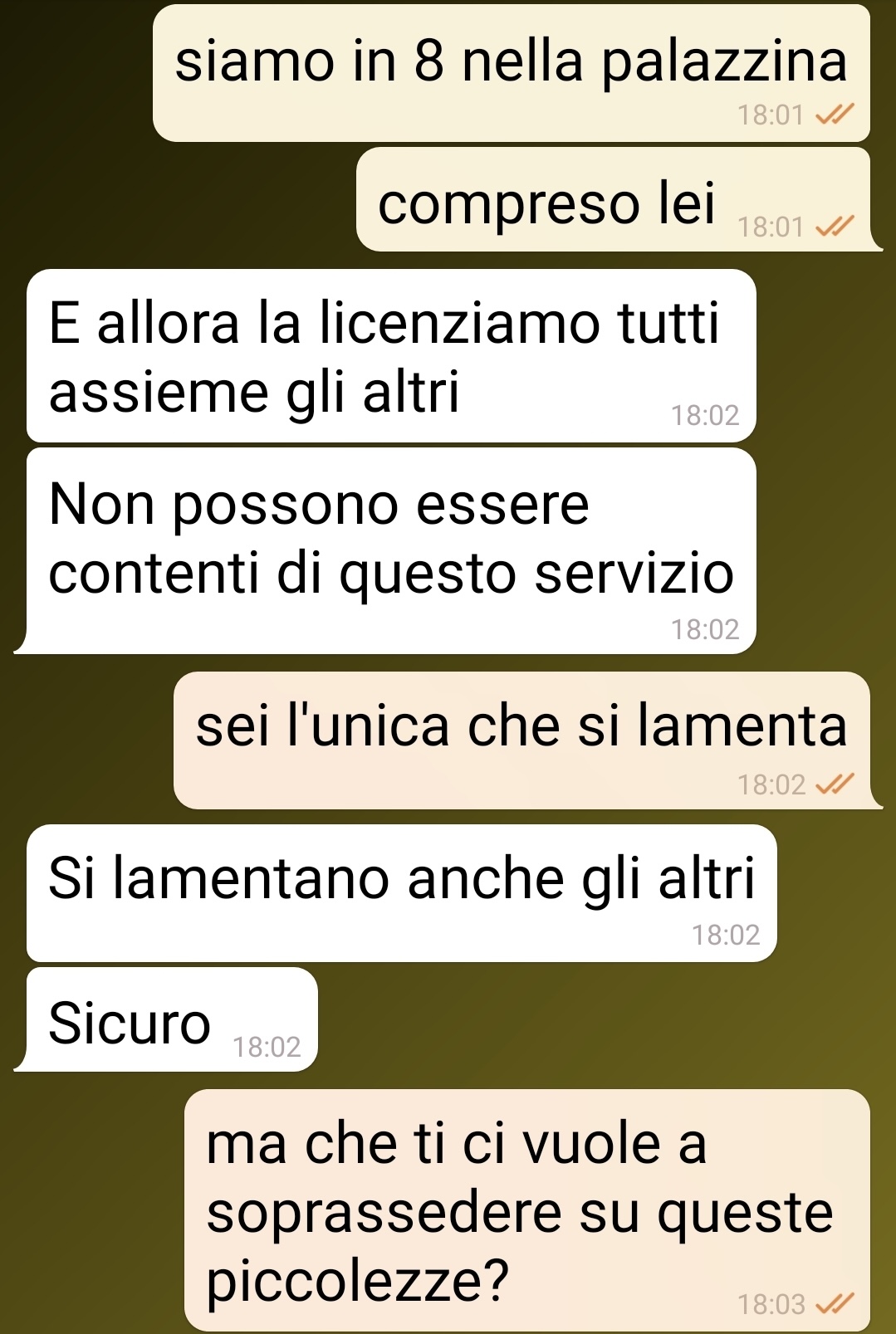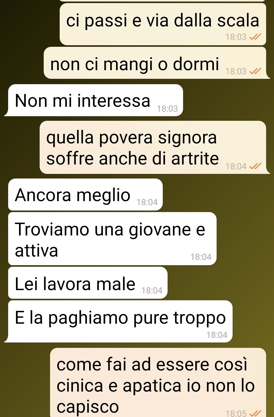 Il nostro fan ha voluto condividere una conversazione avvenuta con sua moglie, che lo ha profondamente colpito. Tutto ruota attorno alla figura di Maria Rita, una condomina del palazzo in cui vive, attualmente incaricata della pulizia delle scale. La donna, che abita al terzo piano, sta attraversando un periodo complicato sia a livello economico che personale: ha perso il lavoro, è rimasta vedova e deve occuparsi da sola di due figli.