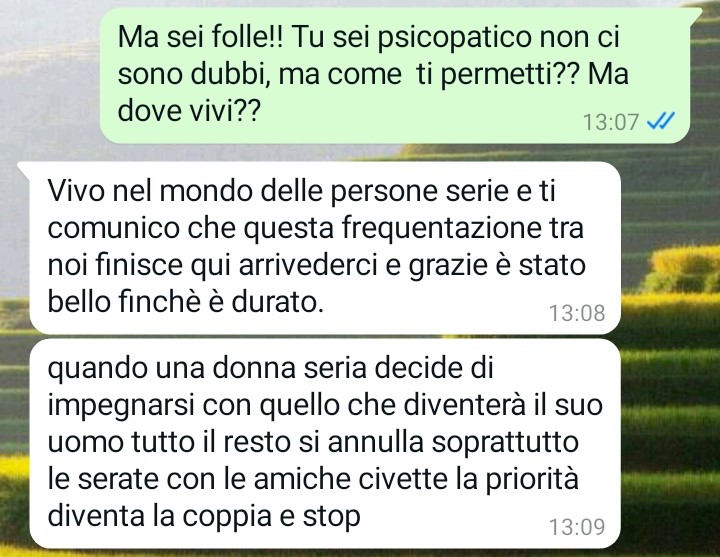 La nostra amica racconta che, leggendo ciò che le veniva scritto, ha provato una sensazione crescente di incredulità. Ogni nuovo messaggio sembrava spingersi oltre il limite precedente, trasformando una semplice conversazione in qualcosa di surreale. È in quel momento che, a suo dire, il ragazzo si è mostrato per quello che è realmente, facendo emergere atteggiamenti e ragionamenti che Elisa fatica ancora a comprendere.