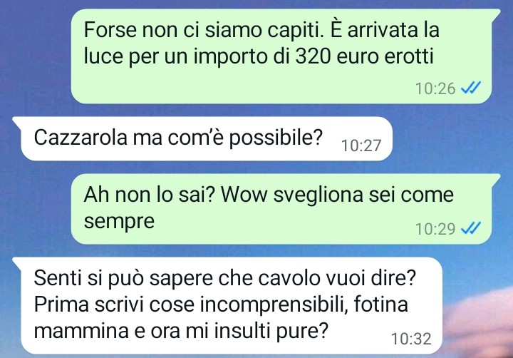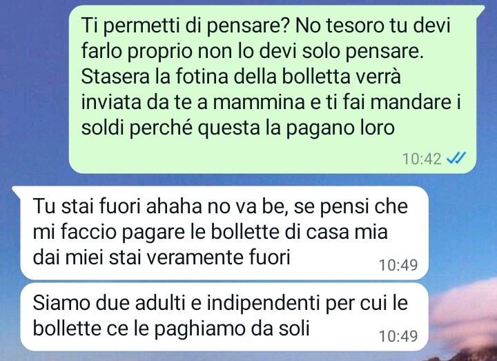 Sono Ivano mi presento e sono qui a scrivervi perché non ne posso più della mia compagna. Ci tengo moltissimo a lei e sono sempre stato pronto a fare qualsiasi tipo di sacrificio per vederla felice, ma quello che proprio non sopporto sono le prese in giro e il dare le cose per scontate. E se è la mia disponibilità ad essere presa per scontata allora lì divento una vera iena. Io capisco che la mia compagna stia passando un momento delicato a causa di alcuni suoi problemi familiari gravi ed è nervosissima ultimamente, però lei non si può nemmeno permettere di riversare tutto su di me in questo modo, dandomi appunto per scontato quando io in realtà non c’entro niente. Si tratta di rispetto nei miei confronti e punto. Leggete quello che è successo tra me e Elena poco fa e ditemi chi tra me e lei starebbe facendo un ragionamento giusto e coerente e chi no. Io penso fermamente di essere nel giusto. Più che giusto.