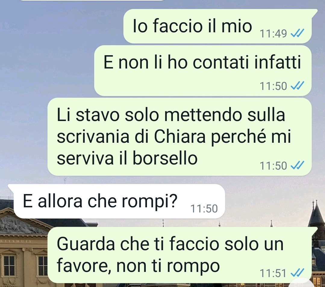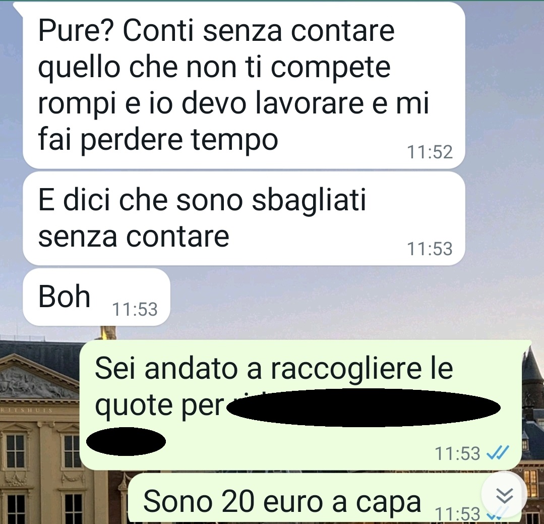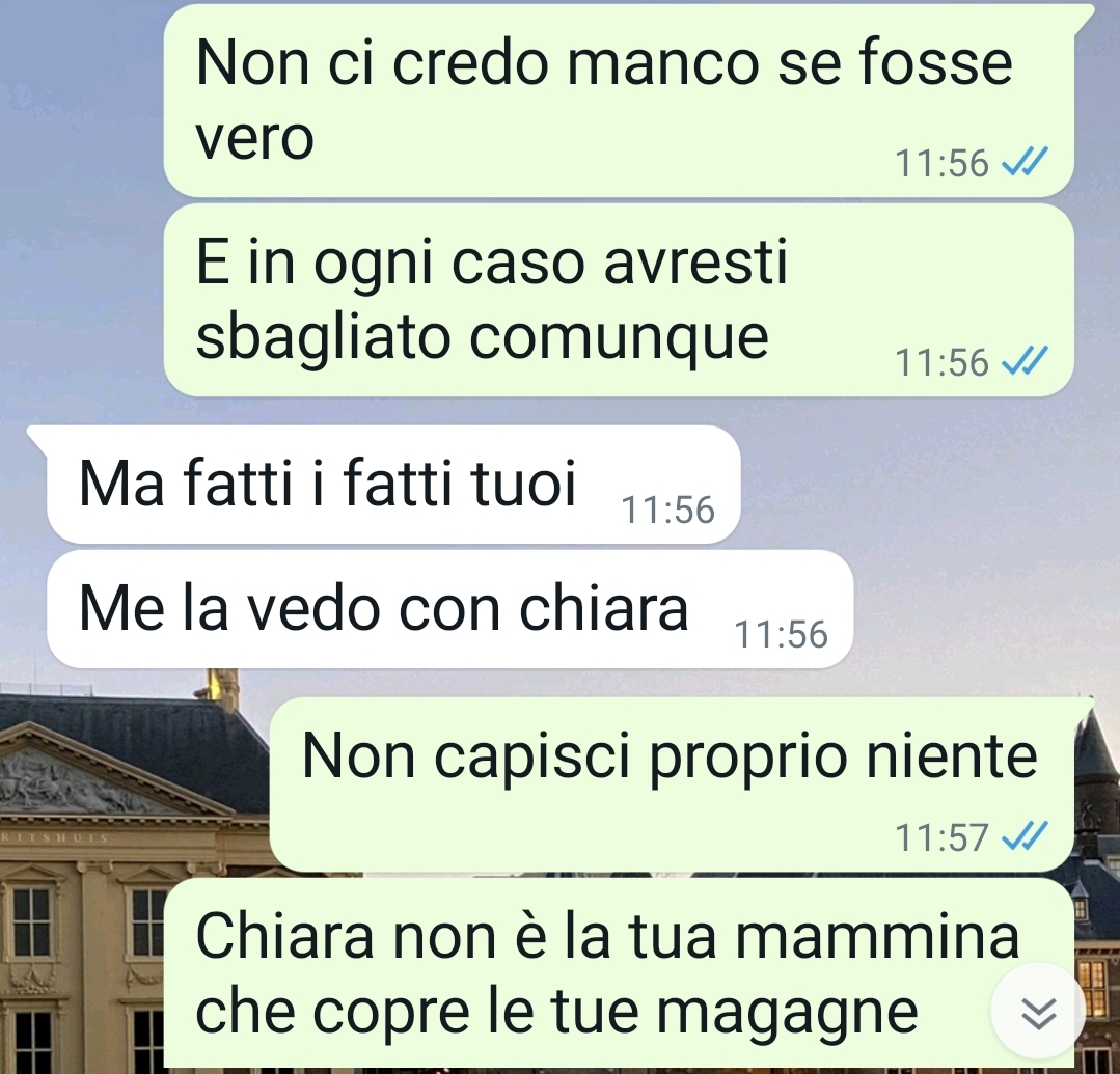 Davide condivide la sua frustrazione riguardo a Maurizio, il cognato, il cui comportamento sta causando tensioni sia in famiglia sia sul posto di lavoro. Sposato con la sorella di Davide da tre anni, Maurizio ha dimostrato una notevole instabilità lavorativa, avendo cambiato cinque impieghi in questo breve lasso di tempo. La situazione sta causando disperazione nella sorella di Davide e disappunto nel padre, che ha sempre espresso dubbi sul valore professionale e personale di Maurizio.