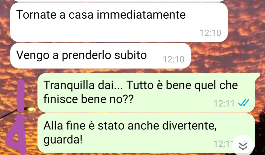 La nostra lettrice ammette candidamente che quanto sarebbe successo dopo non poteva essere previsto né dalla cugina né da lei stessa. L’amico sottolinea come situazioni del genere possano capitare solo a lui e decide di condividere la vicenda con Commenti Memorabili per tre motivi specifici: la singolarità dell’episodio, il potenziale divertimento per chi non ha figli e soprattutto per dare un consiglio importante. La follower conclude infatti raccomandando di non accettare mai incarichi per i quali non si ha alcuna esperienza, suggerimento che evidentemente deriva dalle conseguenze impreviste di quella mattinata trascorsa con il piccolo Brando.