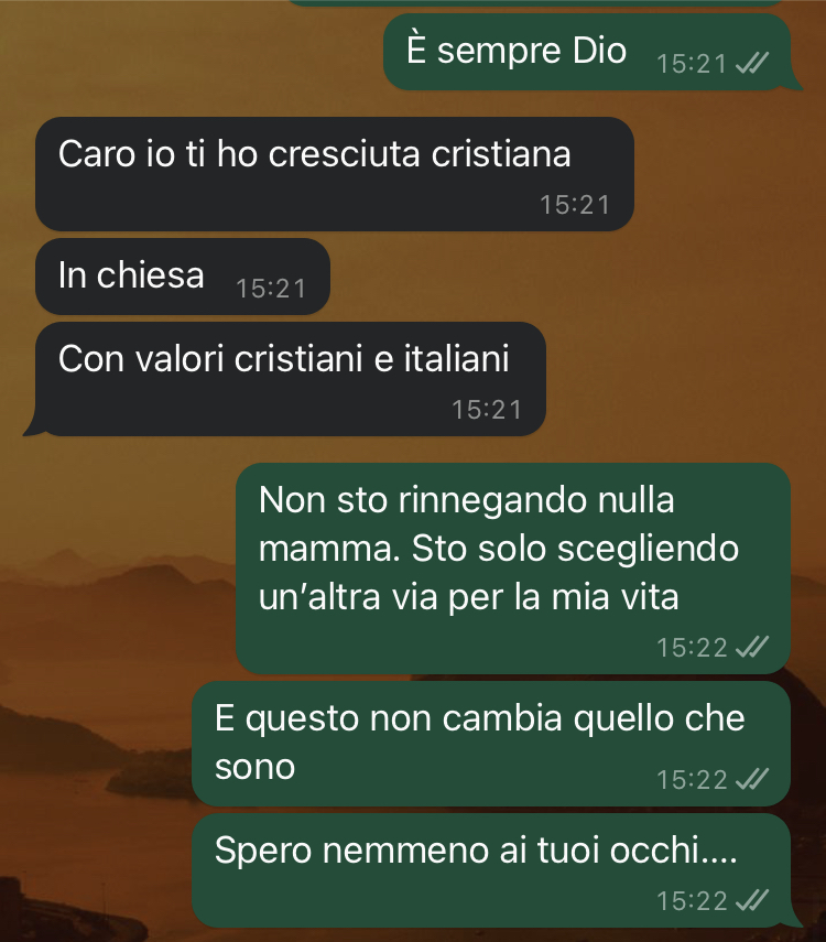 Nonostante il forte legame con il compagno, la nostra fan riferisce che il rapporto con la famiglia di origine è diventato sempre più difficile negli ultimi mesi. I contatti si sono ridotti drasticamente e gli incontri sono diventati rari, poiché Carolina non si sente né accettata né compresa dai suoi cari. L’amica ha tentato di aprire un dialogo con la madre per spiegare le sue nuove scelte di vita, in particolare la sua conversione religiosa, ma l’esito è stato deludente come temeva. La follower descrive la genitrice come prigioniera di pregiudizi che considera completamente infondati, evidenziando come spesso siano proprio i cristiani a mostrarsi più rigidi e chiusi mentalmente rispetto ai musulmani.