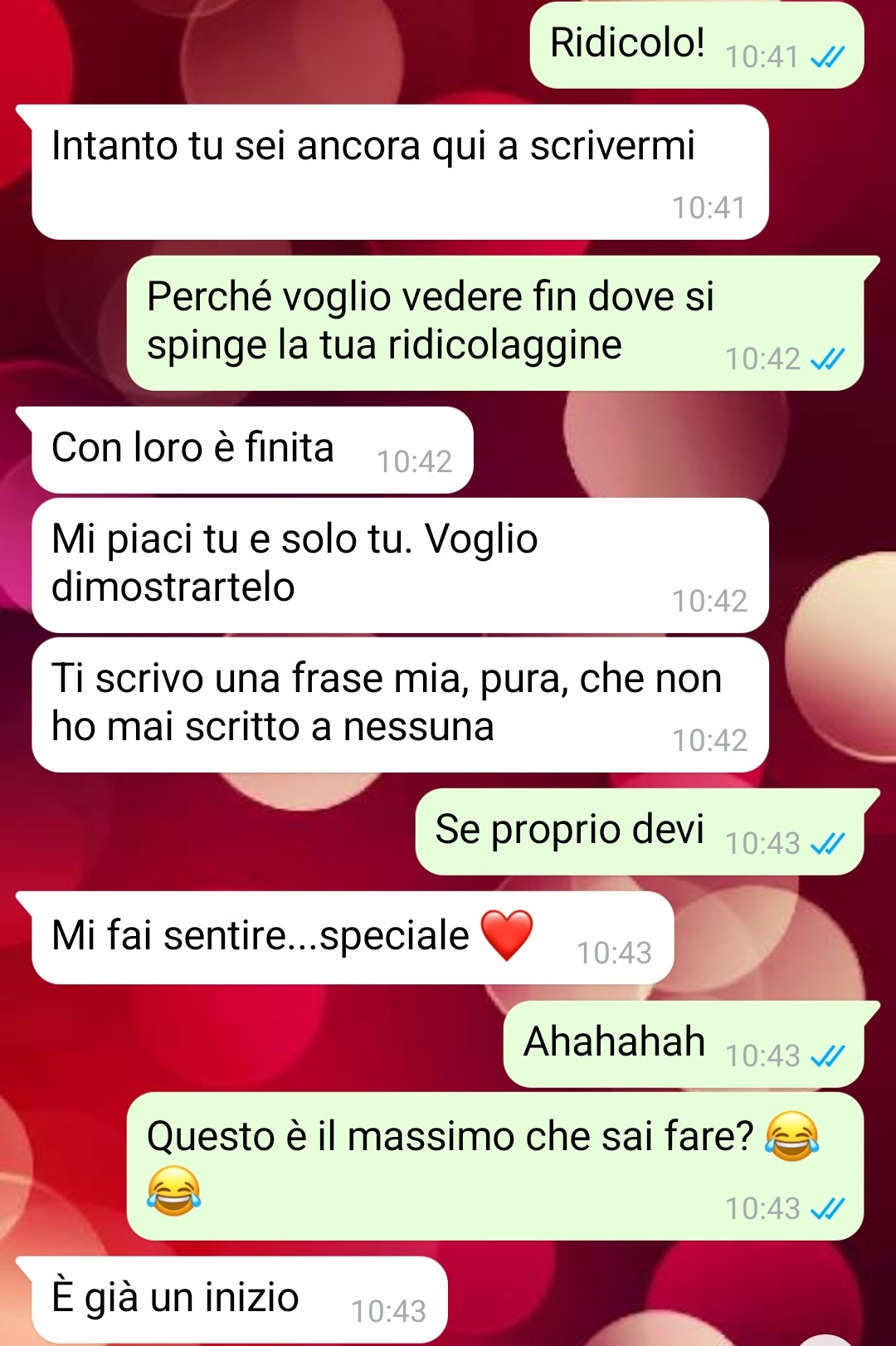 La nostra fan racconta di essere rimasta allibita per un episodio accaduto pochi giorni fa. Spiega che un ragazzo ha iniziato a scriverle su Instagram, presentandosi come carino e simpatico, capace di farle subito una buona impressione. Il nostro fan riferisce che lui ha utilizzato frasi piuttosto comuni, come il classico “sei diversa dalle altre, hai qualcosa di unico”. Pur riconoscendo la banalità di certe espressioni, la nostra amica ammette di aver deciso di stare al gioco, mossa dalla curiosità e dal desiderio di capire dove volesse arrivare.