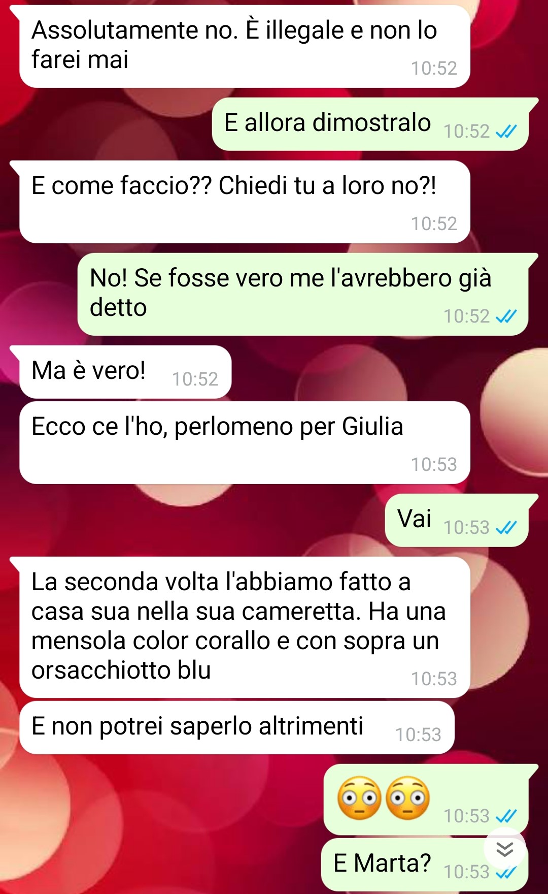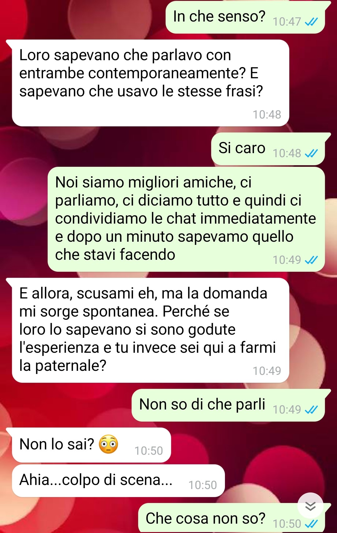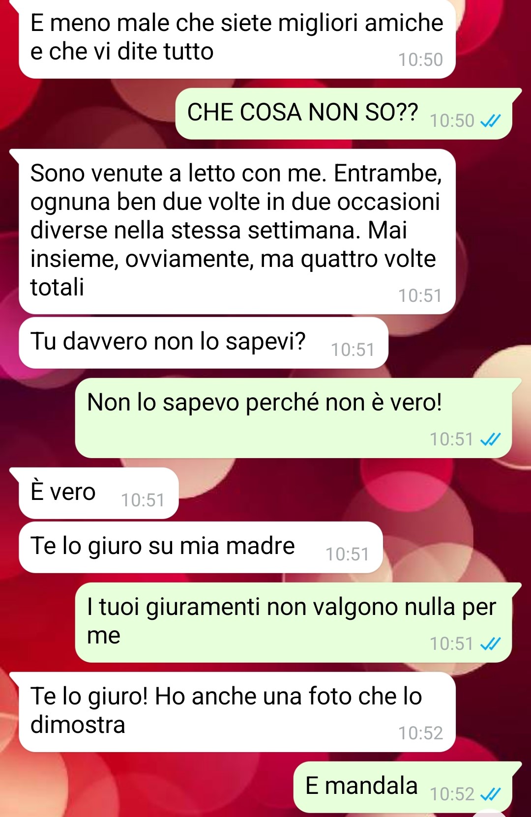 La nostra follower ammette che stava iniziando a considerare seriamente l’idea di incontrarlo, quando è accaduto qualcosa di imprevisto. Le sue amiche, Giulia e Marta, le hanno inviato alcuni screenshot che hanno cambiato completamente la situazione. Il nostro fan racconta che, a quel punto, ha capito di aver fatto un errore nel dargli il numero.