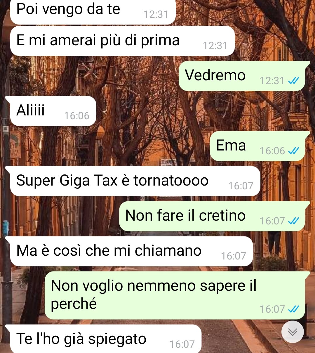 Il suo ragazzo, Emanuele, rappresenta esattamente il tipo di persona che in teoria non avrebbe mai pensato di frequentare. Lui ama attirare l’attenzione, ha atteggiamenti sopra le righe e persino un soprannome che Alice si rifiuta categoricamente di usare: “Super Giga Tax”. Un nome che, come precisa ironicamente, non vuole nemmeno sapere da dove venga, nonostante sia trascorso già un anno dall’inizio della loro relazione.