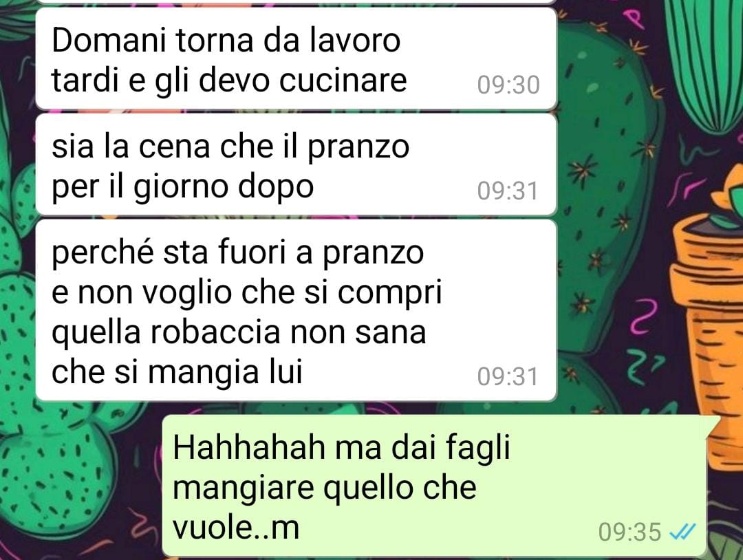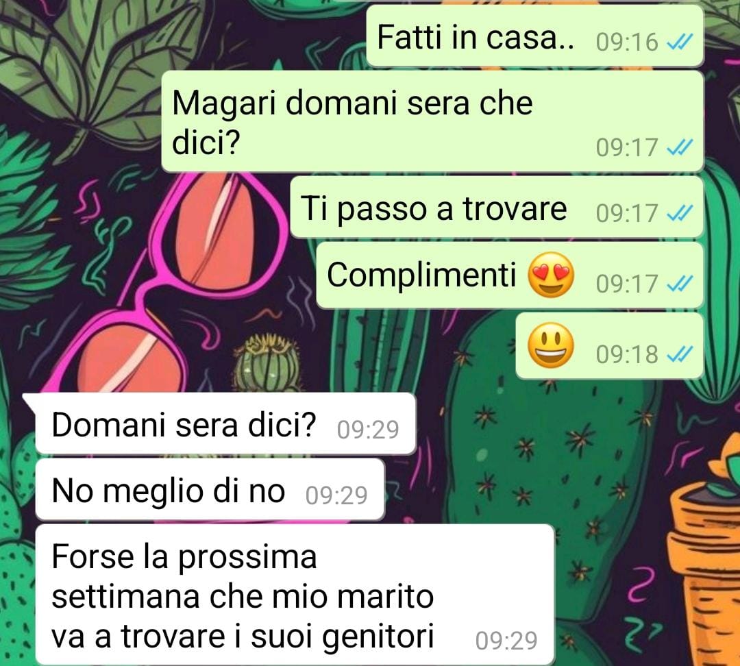 Volevo condividere con voi i miei pensieri su Ivana, la moglie di mio cugino. Da poco si sono trasferiti nella nostra regione e devo dire che sono super felice di averla vicina. Quando andavamo in vacanza da loro lei è sempre stata molto accogliente e gentile con me. Poi abbiamo una grande passione in comune: la cucina. Io però adoro la cucina nel senso che mi piace mangiare piatti prelibati, mentre Ivana è una cuoca fantastica. Riesce a trasformare qualsiasi ingrediente in un piatto da chef stellato! Però, c’è una cosa che mi preoccupa di Ivana. Lei è completamente assorbita dalle faccende domestiche e dal prendersi cura del marito. Mio cugino è un brav’uomo ma su questo un po’ all’antica. Lei è una moglie e casalinga perfetta, ma spesso questo le fa mettere da parte i suoi sogni e desideri. Passa ore a pulire, cucinare per lui e sistemare la casa, ma sembra dimenticarsi di se stessa. Mi dispiace vederla così perché ha un talento incredibile. Pensate che teneva dei suoi corsi di cucina, di grande successo, e sarebbe fantastica con un suo ristorante, ma lei è sempre troppo impegnata con la casa. Voglio davvero incoraggiarla a seguire le sue passioni perché so che potrebbe fare grandi cose. Però non voglio neanche mettere in discussione le sue scelte di vita personali. Io proverò ad incoraggiarla!