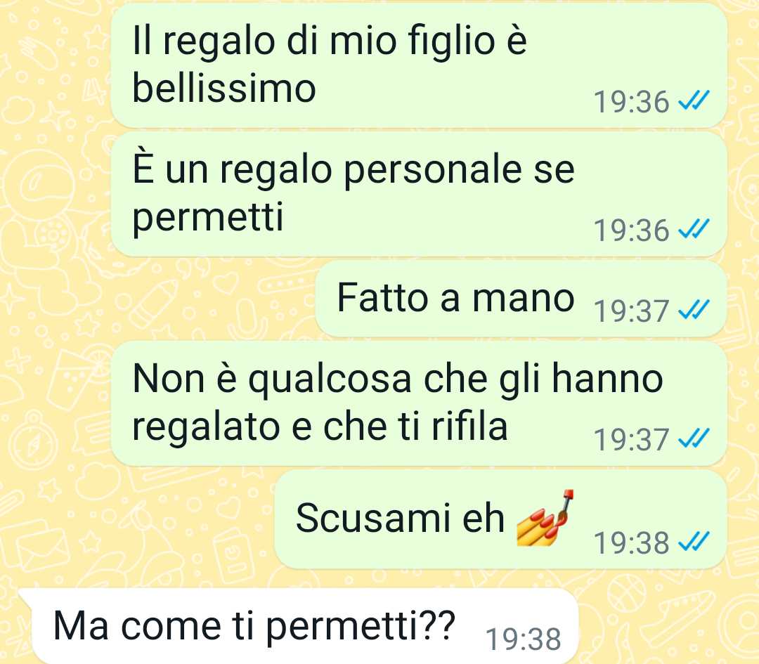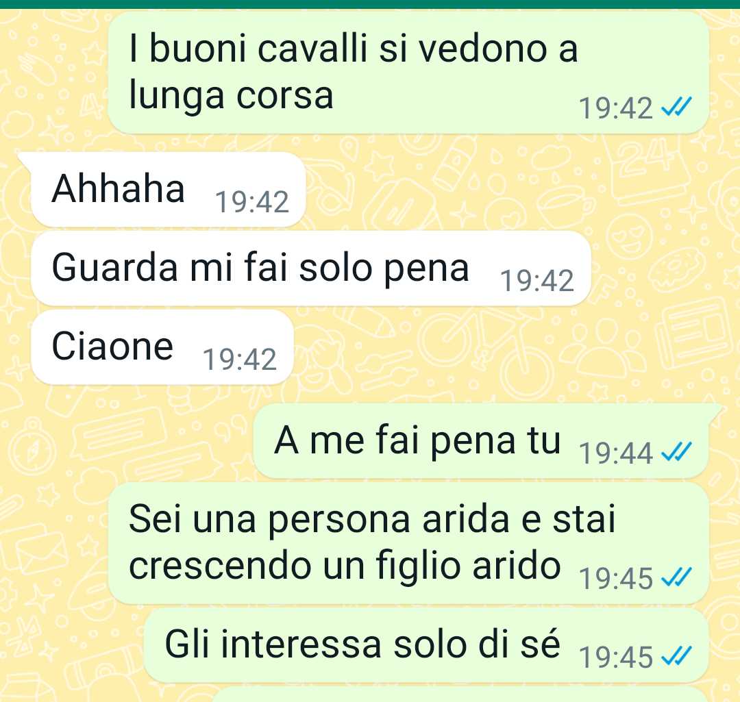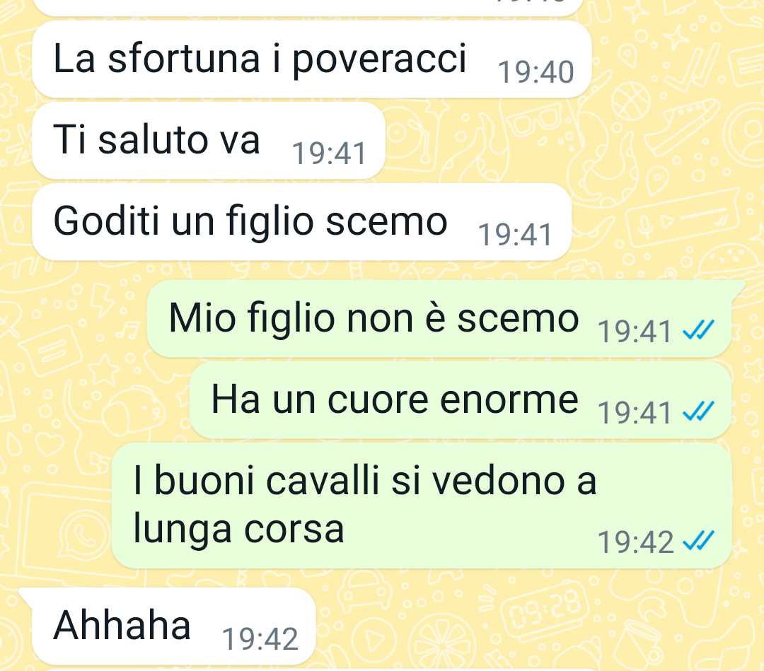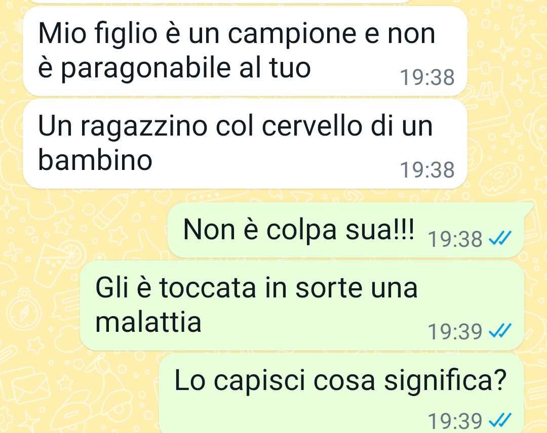 La mamma racconta che l’amica ha mostrato una superficialità e un egocentrismo che si riflettono anche nel modo in cui sta crescendo suo figlio, Eugenio. Secondo lei, Eugenio è un ragazzo viziato e indifferente, abituato a essere lodato dalla madre per ogni minima cosa, senza sviluppare sensibilità verso gli altri.