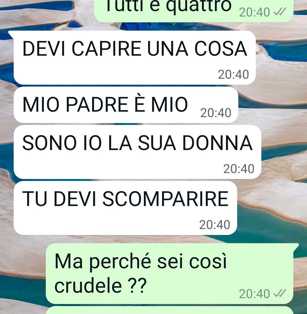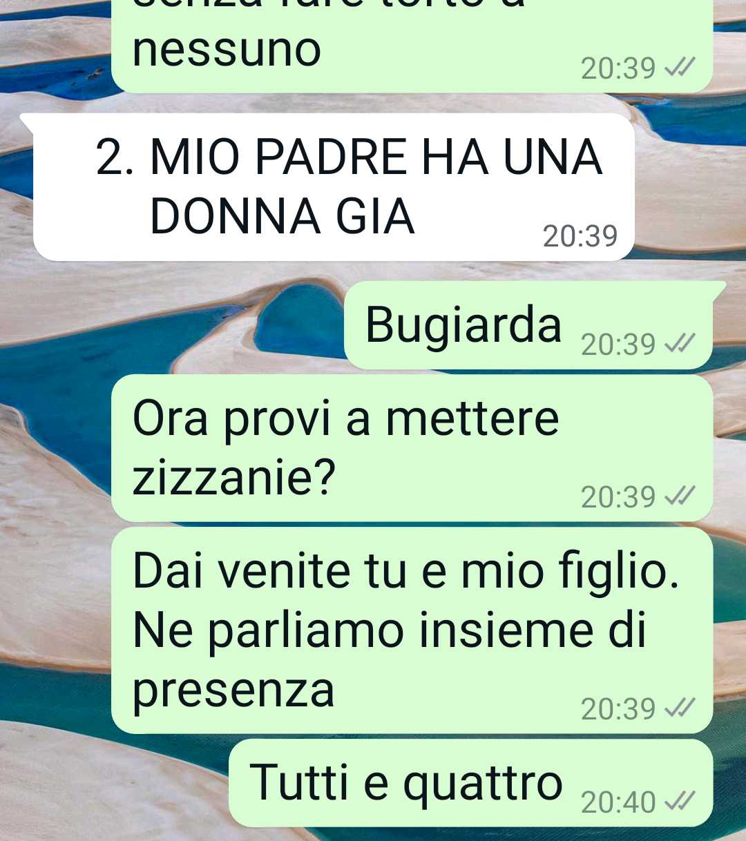 La nostra fan si è detta ferita dalla reazione ricevuta, soprattutto perché proveniente da persone che fanno parte della sua famiglia. Ha condiviso le immagini della conversazione avvenuta su WhatsApp, come testimonianza dei toni utilizzati e del livello di conflitto raggiunto.