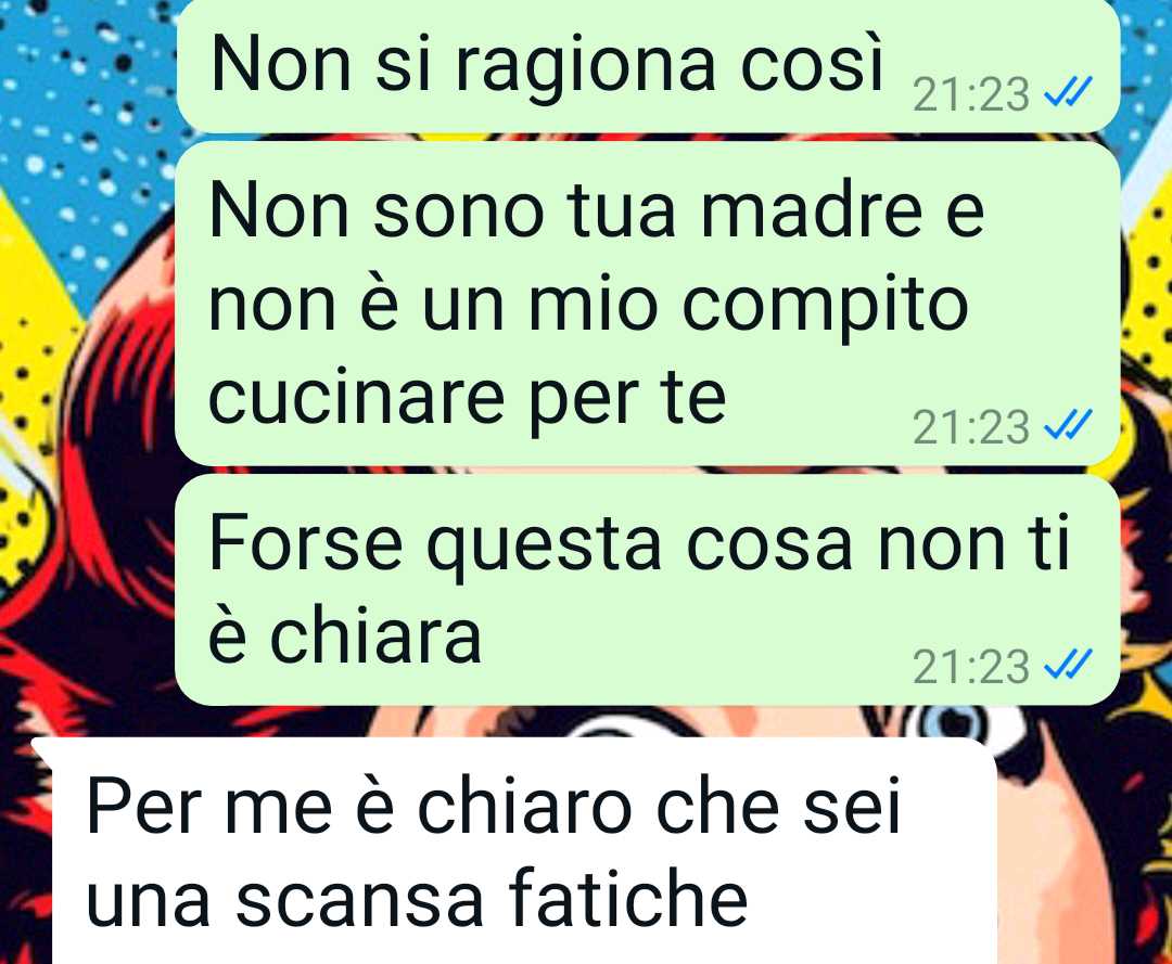 Secondo il follower, il compagno ha presentato la cosa come una sorta di conseguenza per il fatto che lei non aveva cucinato quella sera. La nostra fan spiega di aver percepito questa richiesta quasi come una punizione imposta per qualcosa che lui riteneva sbagliato.