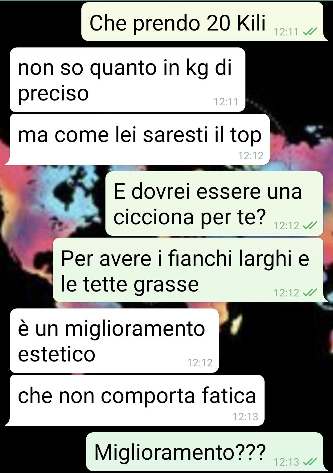La vicenda si svolge durante una festa di compleanno organizzata da una sua parente, occasione in cui il nostro fan ha deciso di presentare il fidanzato al resto della famiglia. Durante l’evento erano presenti diversi cugini, tra cui Ilenia, cugina di primo grado della nostra fan. Le due si somigliano molto fisicamente, ma presentano una differenza evidente nel peso: Ilenia ha circa venti chili in più rispetto a lei.