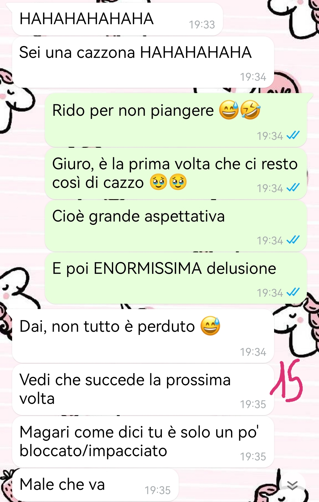 Quando finalmente la situazione sembrava poter evolvere, il follower ha scoperto che il ragazzo aveva molte resistenze e si dimostrava particolarmente schizzinoso riguardo a diverse pratiche intime. Nonostante questi comportamenti contraddittori dal vivo, lui continua imperterrito a inviarle messaggi molto espliciti come se fosse, nelle parole della nostra fan, ‘il re dei maiali’. La ragazza ha condiviso tutti questi dettagli in una chat con la sua migliore amica e ora si chiede se si tratti di un caso umano particolare o se sia lei a perdere la ragione di fronte a questa situazione paradossale.