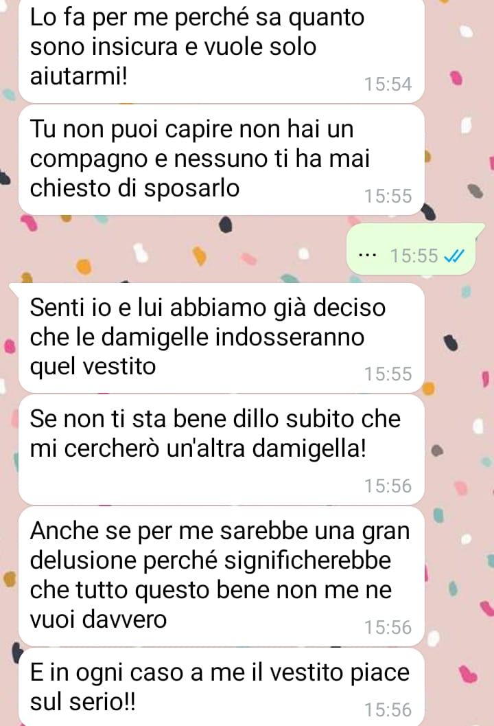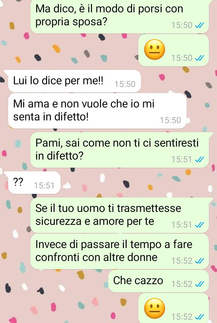 Ciò che l’ha ferita di più è stato proprio questo atteggiamento, il sentirsi messa da parte da una persona che considerava importante. E ora si chiede perché tra donne ci si trovi ancora, troppo spesso, a vivere dinamiche di competizione anziché di sostegno reciproco. Ha deciso di condividere la conversazione per riflettere su quanto sia difficile, a volte, difendere la propria dignità senza spezzare legami che dovrebbero invece rafforzarsi nei momenti significativi della vita.