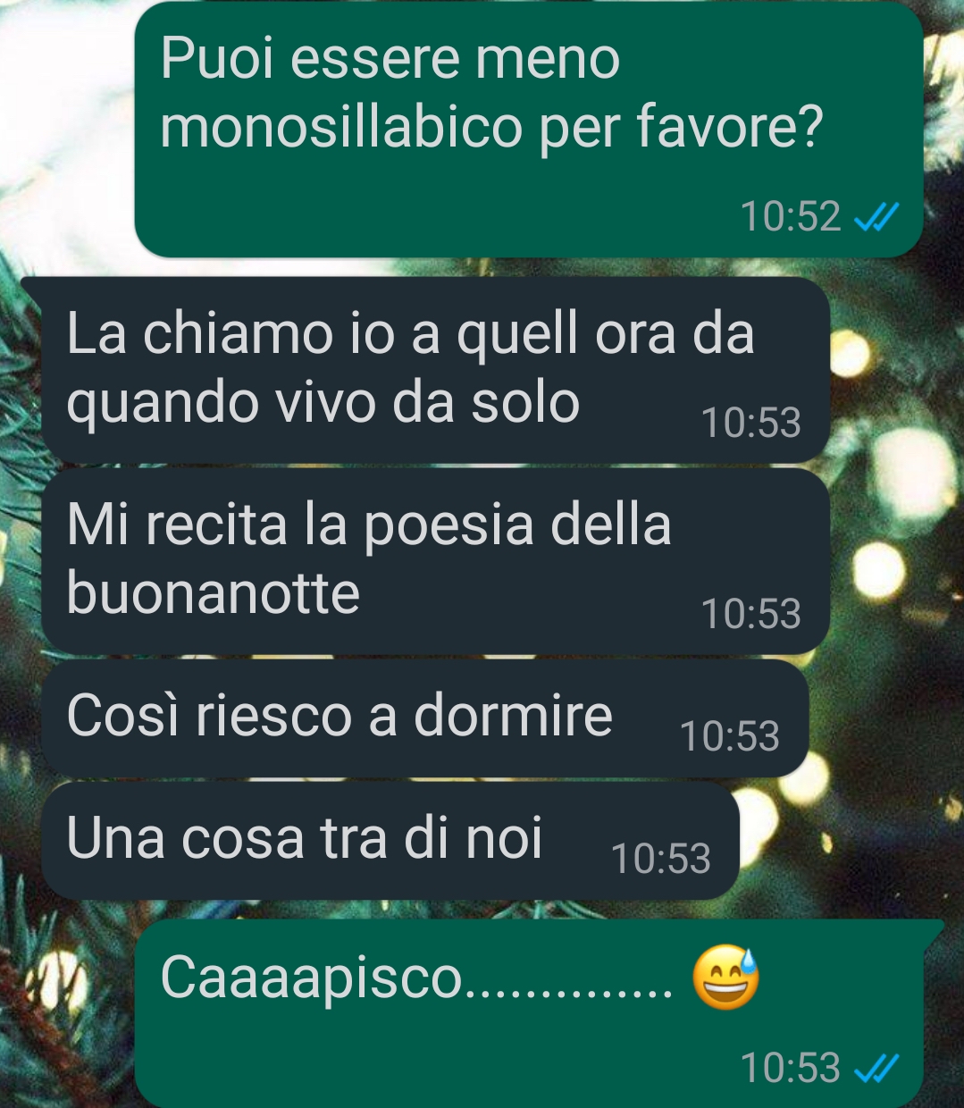 La nostra fan Camilla condivide con Commenti Memorabili una conversazione che definisce fresca di giornata, avvenuta con il suo ormai ex fidanzato Dario. L’amica racconta di aver pensato immediatamente alla pagina mentre parlava con quello che descrive in termini poco lusinghieri, sentendo il bisogno impellente di condividere gli screenshot con il mondo intero. La follower precisa che questa storia non fa ridere come altre solitamente pubblicate, ma fa piangere dal nervoso, preparando i lettori ad assistere a quello che definisce il declino della sua relazione.