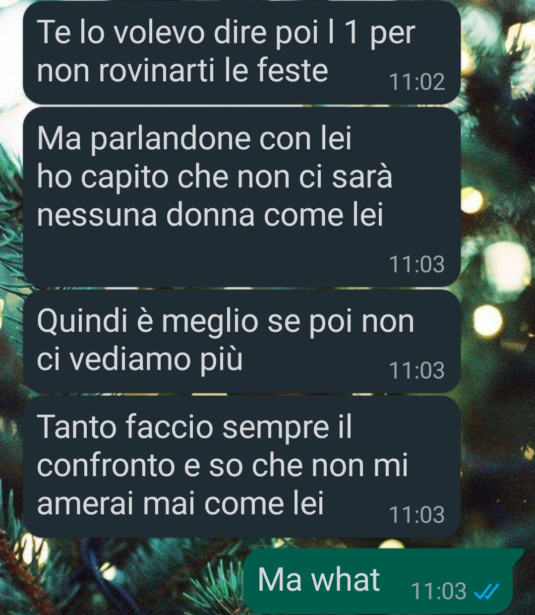 A causa della loro situazione abitativa e della durata relativamente breve della relazione, la coppia ha trascorso le festività natalizie separatamente. Ognuno dei due ha passato il Natale con la propria famiglia di origine e i rispettivi genitori, una scelta che appare comprensibile data la mancanza di convivenza e il fatto di non essere una coppia consolidata da molto tempo.