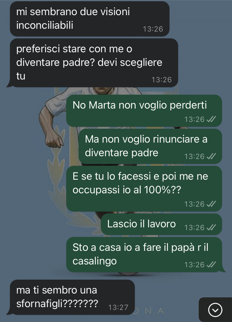 Recentemente, però, qualcosa è cambiato nell’animo del nostro fan. Ha iniziato a provare un desiderio che non aveva mai sperimentato prima, un pensiero che lo accompagna sempre più frequentemente nei momenti più inaspettati. Il problema principale è che Marta non condivide questo stesso desiderio. La ragazza aveva già espresso chiaramente la sua posizione fin dall’inizio della loro relazione, ma all’epoca Francesco era d’accordo con lei. Il follower ammette che, nel profondo, sperava che crescendo entrambi avrebbero cambiato idea e si sarebbero sentiti pronti quando fossero diventati più maturi.
