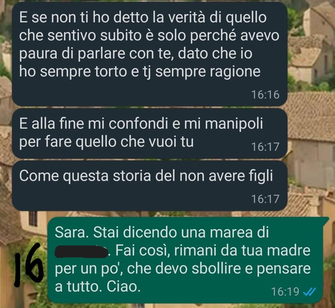 La situazione è diventata ancora più complessa quando, durante una vacanza al mare con sua madre, il nostro fan ha scoperto qualcosa che lo ha profondamente turbato. Questo evento ha innescato in lui sentimenti di stanchezza e rabbia, portandolo a sentirsi a un bivio. Ora, si trova a dover decidere se fidarsi ancora di Sara e come affrontare questa situazione difficile, in cui i loro progetti e le loro aspettative sembrano non essere più allineati.