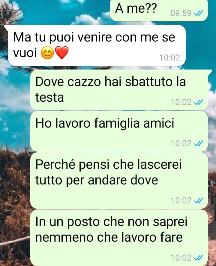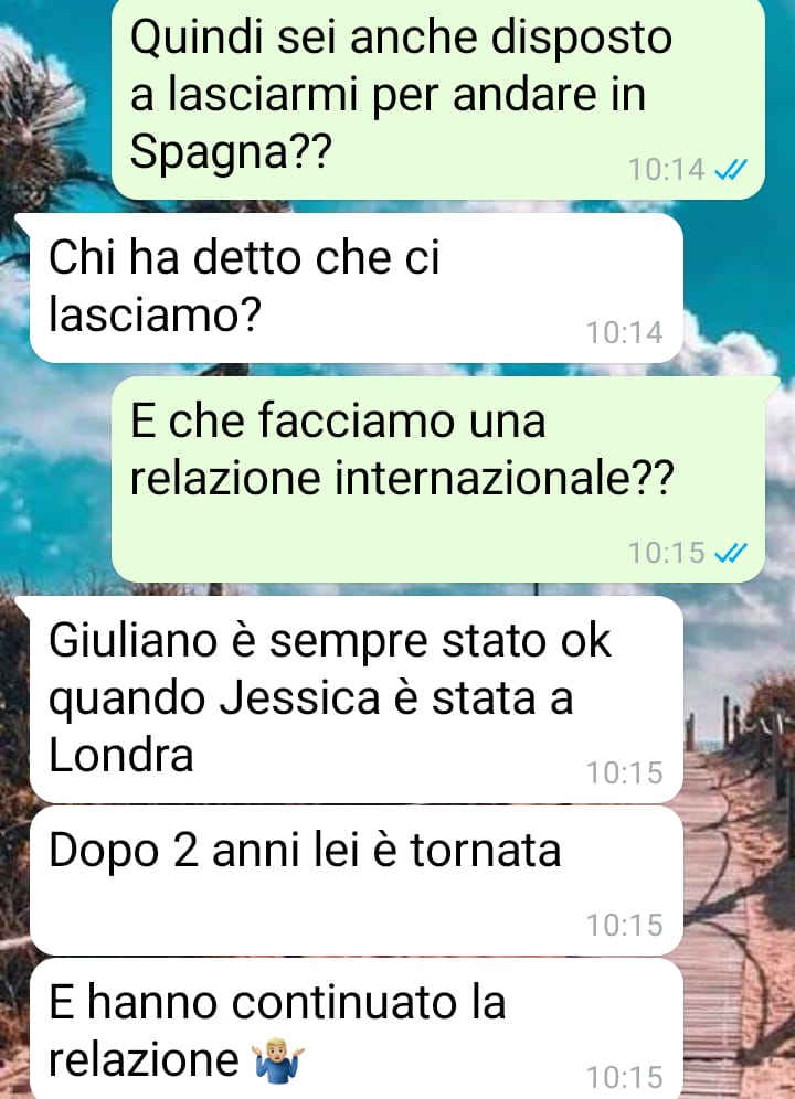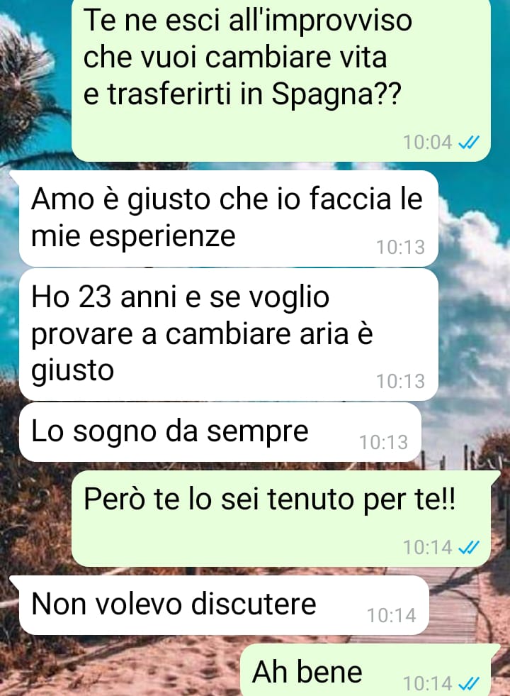 Il punto di rottura si è manifestato quando il ragazzo, con un messaggio apparentemente leggero, le ha comunicato che stava valutando dei voli per andare in Spagna a trovare un amico. La nostra follower sottolinea come questa decisione, presa con entusiasmo e senza alcun tipo di confronto, lasciasse intendere chiaramente che lui sarebbe partito da solo, escludendola del tutto.