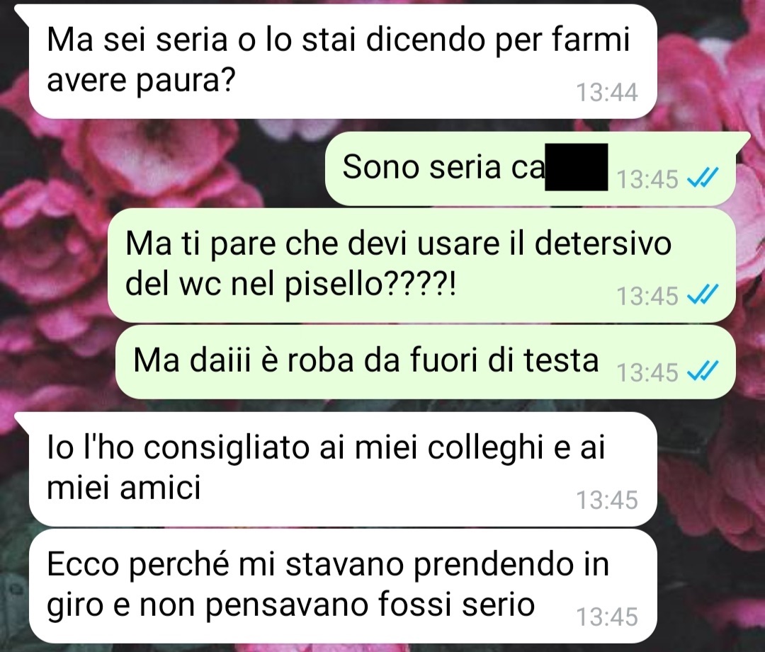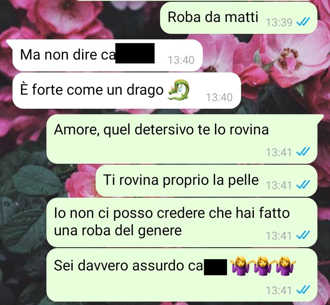 La conversazione con Franco rivelò un uso del detersivo decisamente fuori dall’ordinario, al punto che Lucia rimase completamente sbalordita. La scoperta di questo uso insolito del detersivo per il WC nella doccia è stata talmente sorprendente per Lucia da spingerla a condividere la storia, insieme a degli screenshot per fornire un contesto visivo sulla situazione.