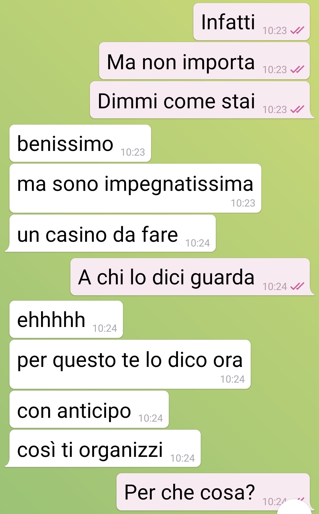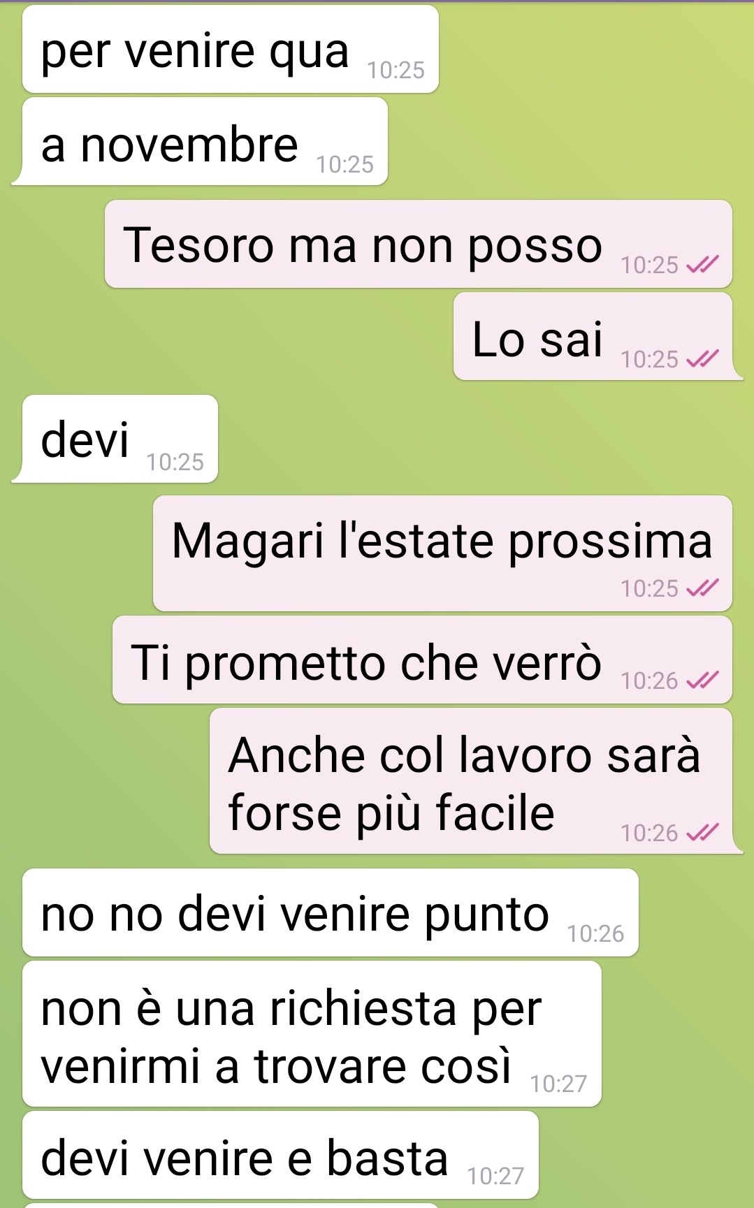 “La mia amica si sposa a novembre, e vuole che io faccia da testimone al suo futuro sposo. Il mare! A tutto ero pronta, ho pure iniziato da poco un lavoro massacrante con turni ancora più massacranti. Non posso neanche chiedere ferie per i primi 6 mesi. Ma ecco che si fa sentire Francesca con una richiesta che credo abbia messo la pietra tombale sulla nostra amicizia. Io sono Natalia e ci conosciamo sin da piccole. Siamo rimaste amiche intime nonostante il mio carattere un po’ nevrotico e la stramberia che ha sempre contraddistinto il suo vivere. Neanche la lontananza dovuta al suo trasferimento in Puglia aveva scalfito il nostro rapporto, anche se con dialoghi più diradati. Ecco che allora quando mi scrive sono contenta, prima di apprendere il motivo per cui mi stava scrivendo. Ha deciso di sposarsi con il mare. Non sapevo come comportarmi e alla fine è finita male. Quando mi ha fatto una richiesta ancora più assurda il coperchio mi è saltato. E lei non l’ha presa bene…”