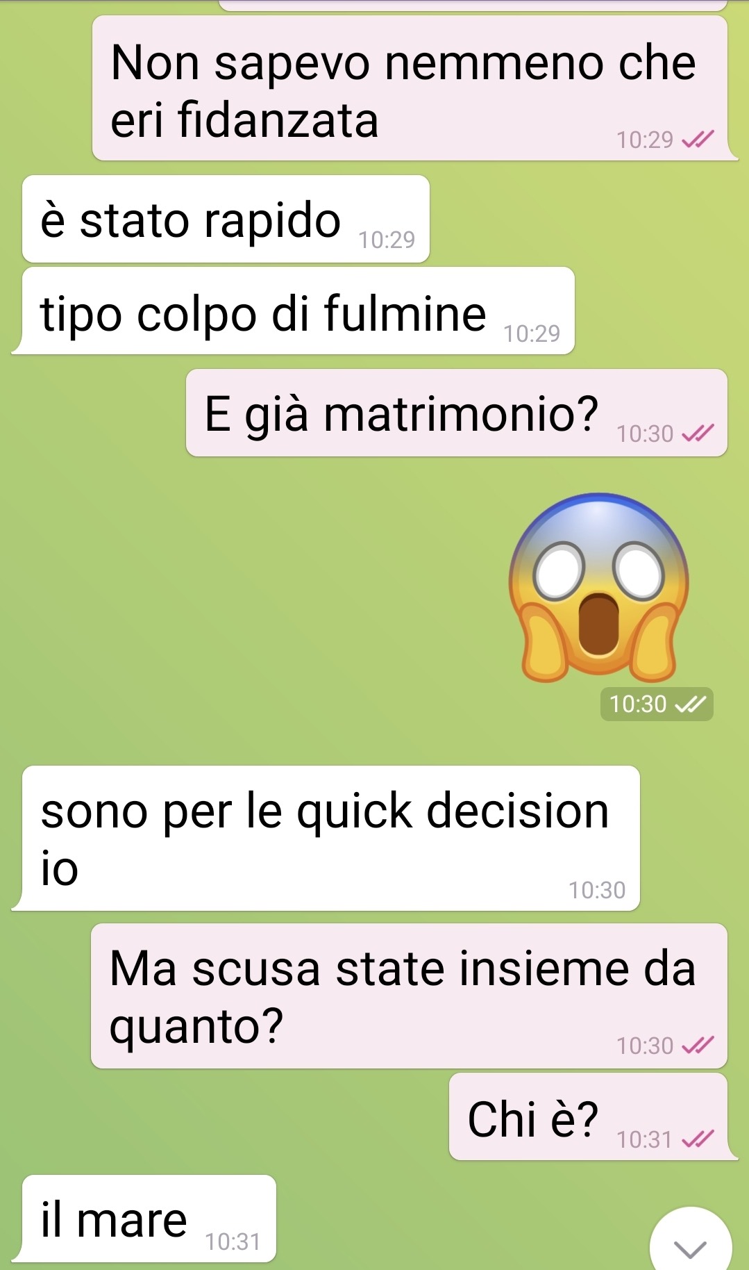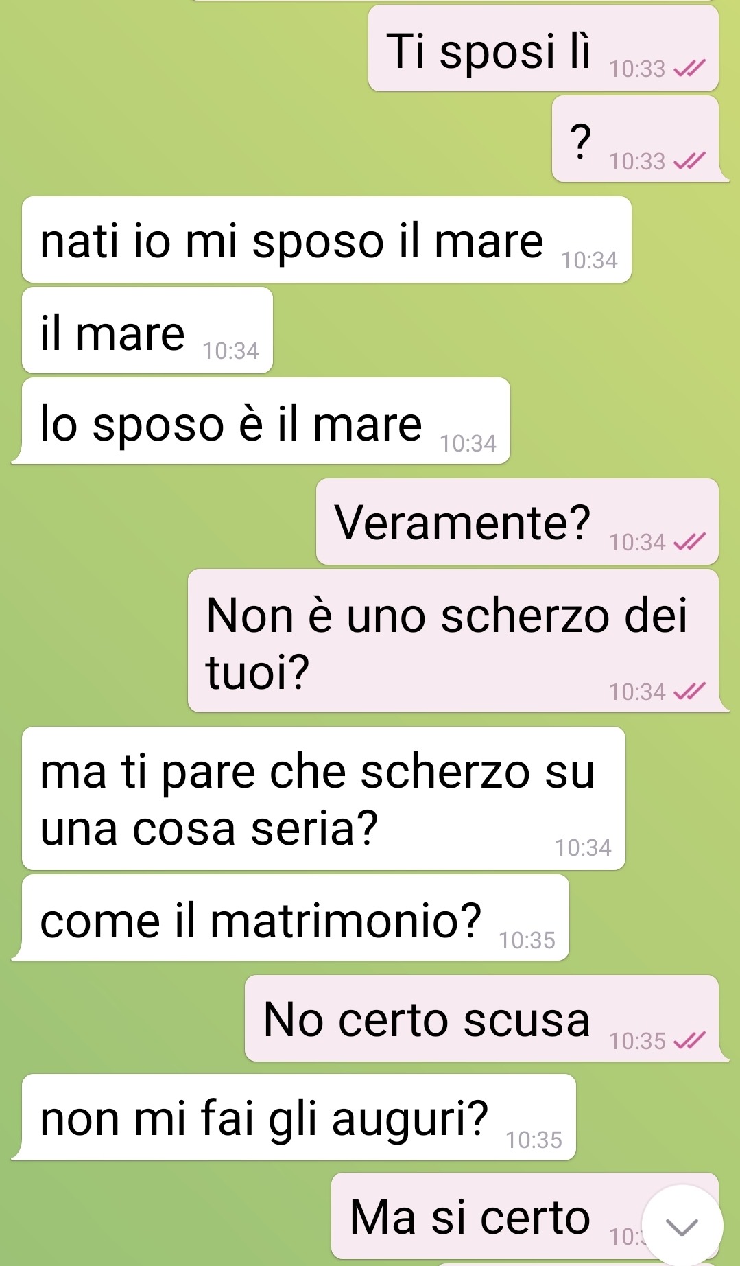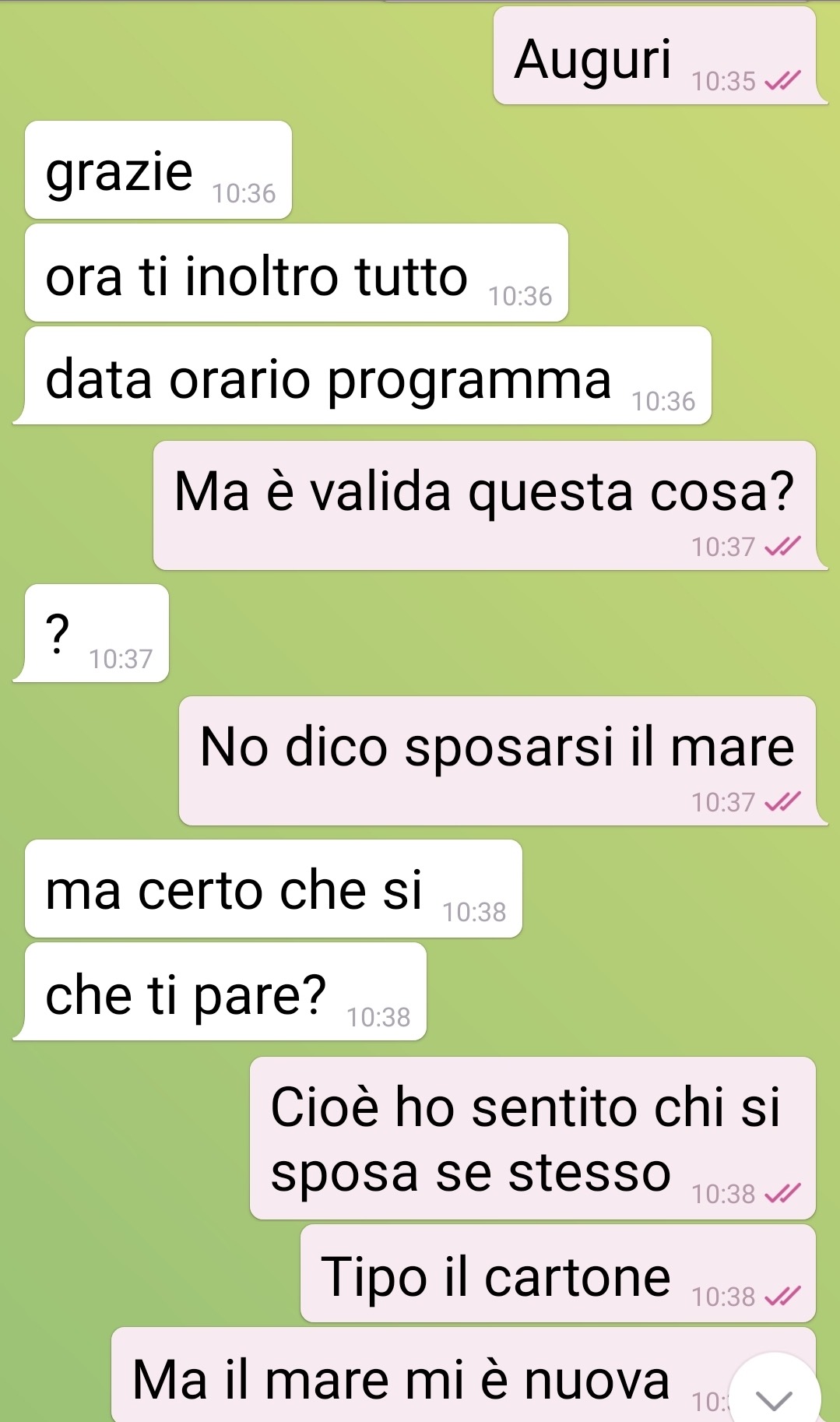 Francesca ha deciso di sposarsi a novembre e, fino a qui, Natalia era pronta a supportarla. Tuttavia, la situazione si è complicata quando Francesca ha chiesto a Natalia di fare da testimone non per lei, ma per il futuro sposo. A peggiorare le cose, Francesca ha rivelato che il matrimonio sarà con “il mare” come tema centrale, il che ha lasciato Natalia ancora più perplessa.