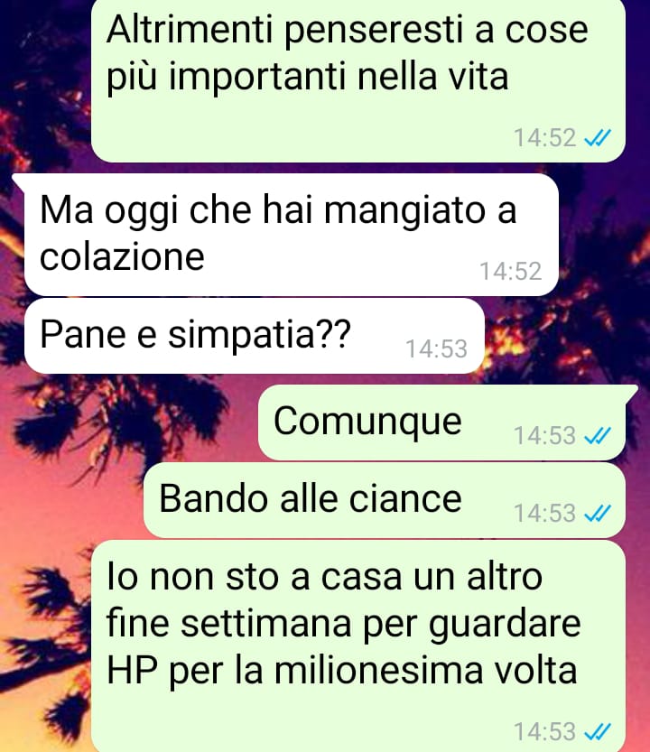 La sua ragazza, racconta, è totalmente immersa nel mondo della saga. Al punto che, secondo il nostro follower, ogni discussione o accenno all’argomento si trasforma in una reazione esagerata, quasi fuori misura. La situazione si era temporaneamente placata quando i film erano stati rimossi dalla piattaforma streaming, ma appena sono tornati disponibili, lei gli ha scritto subito per organizzare un’ulteriore maratona.