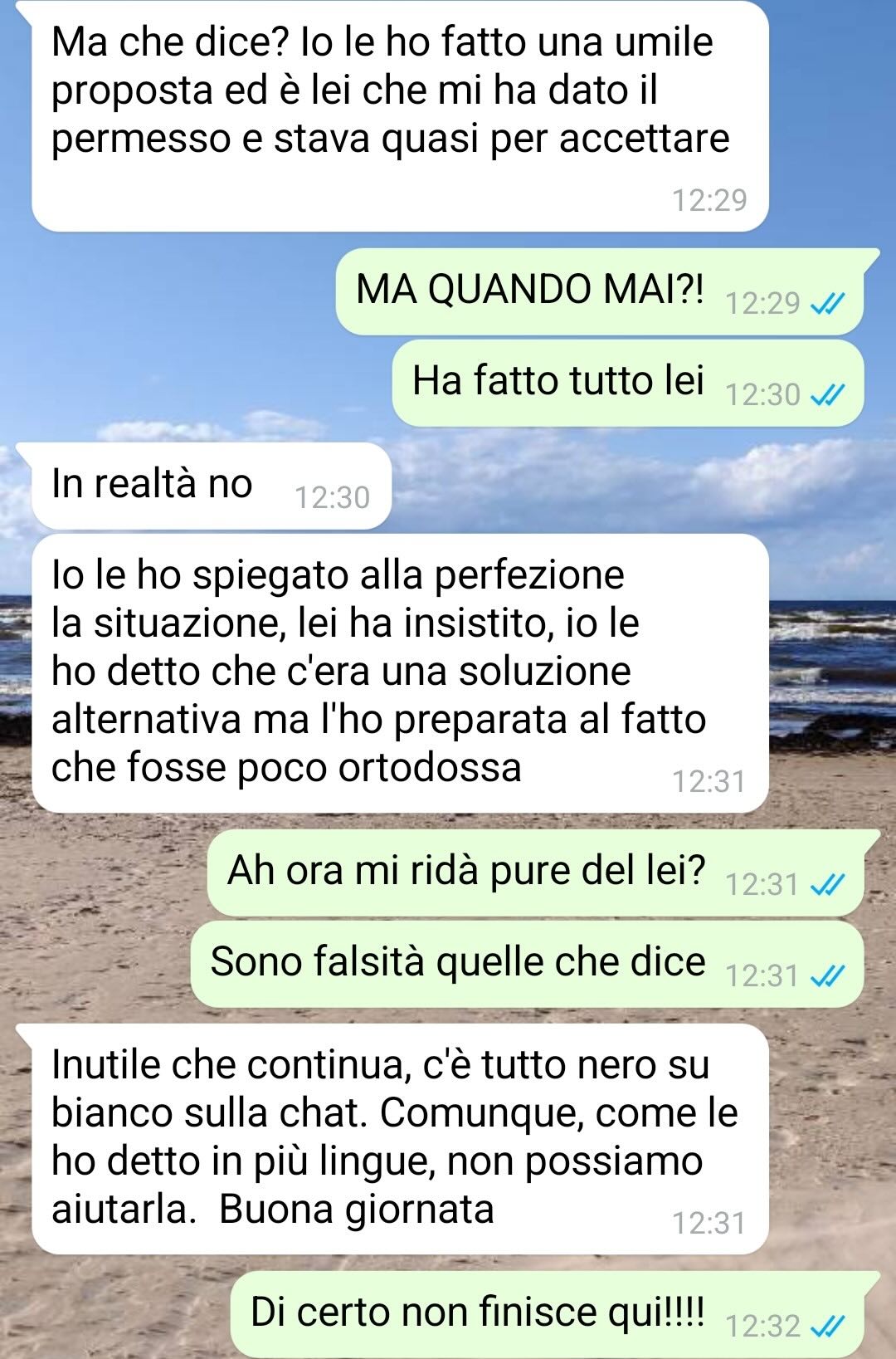 La nostra follower ha deciso di condividere questa conversazione proprio per mostrare come anche nelle interazioni più quotidiane possano nascondersi momenti spiacevoli e imprevedibili. Un’esperienza che l’ha profondamente colpita e che ha rivelato quanto, a volte, la mancanza di rispetto possa insinuarsi anche dove meno ce lo si aspetta.