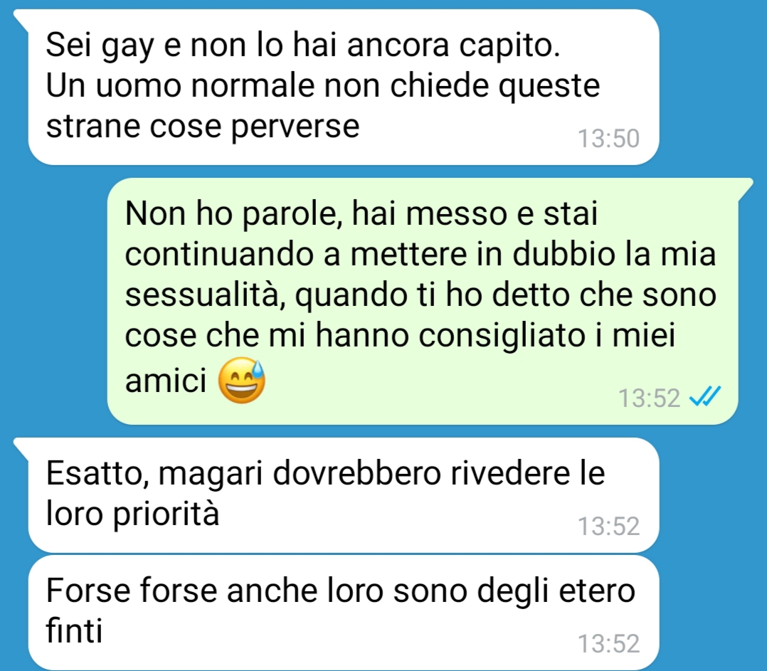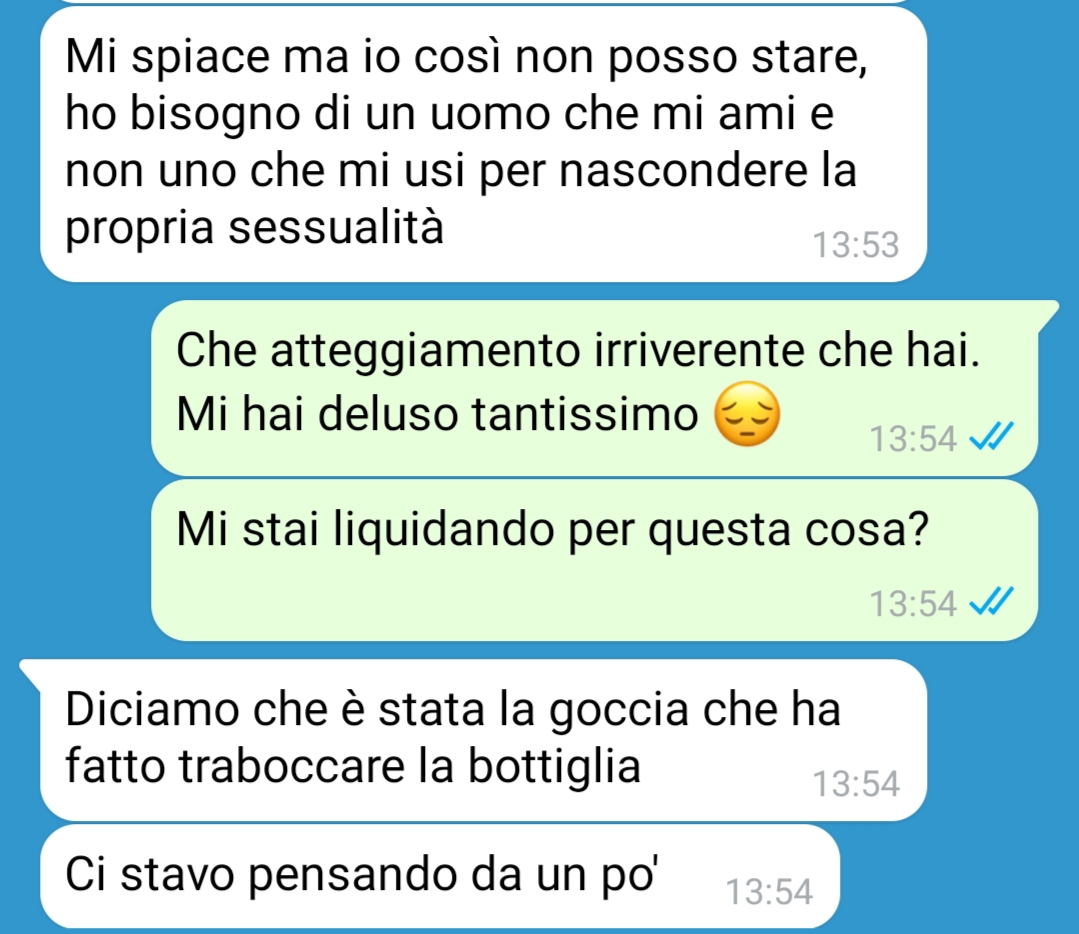 Il nostro amico racconta che questa situazione ha lasciato un segno e che sta ancora soffrendo per quanto accaduto. Allo stesso tempo, però, una parte di lui è consapevole che forse è stato meglio che le cose siano andate così, perché non si sarebbe mai aspettato che da un confronto sincero potesse nascere un’incomprensione così profonda. Una storia che lo ha lasciato spiazzato e che non avrebbe mai immaginato di dover affrontare.