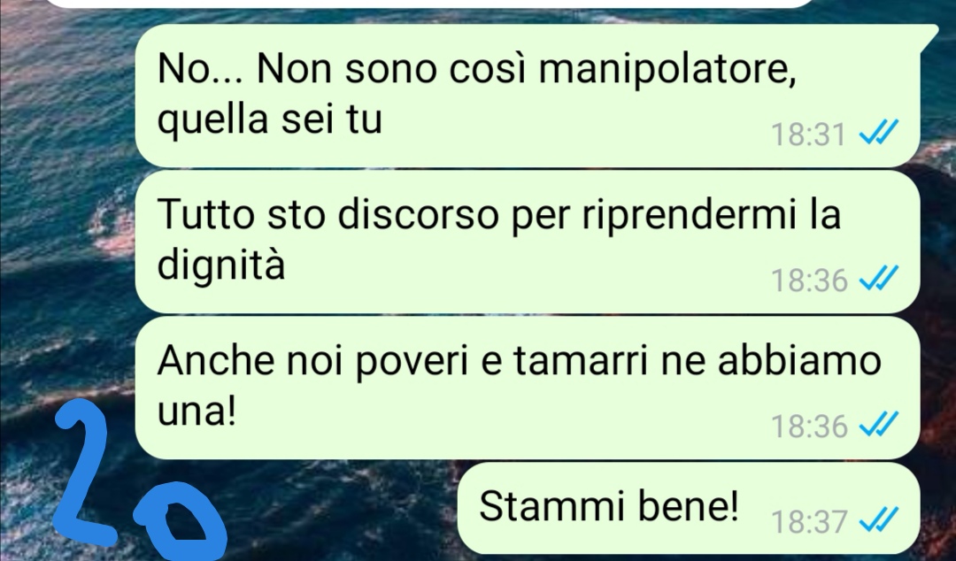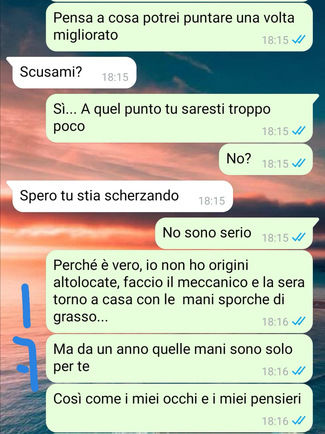 Il nostro amico dice di aver deciso di condividere la chat non per sfogarsi o cercare giudizio, ma con un intento ben preciso: spera che il suo racconto possa servire ad altri ragazzi nella sua stessa situazione. Che possa far riflettere, evitare illusioni, o almeno preparare chi legge a riconoscere certi segnali.
