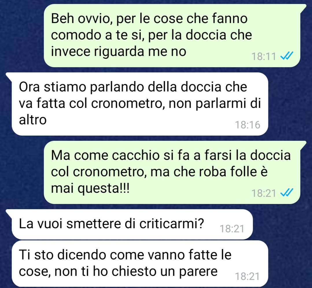 Già dai primi giorni, l’atmosfera è apparsa tesa e anomala. Con il tempo, però, la situazione è degenerata in atteggiamenti sempre più invasivi da parte del suo compagno, che ha iniziato addirittura a cronometrare quanto tempo lei impiegasse per fare la doccia, dando l’impressione di considerarsi l’unico responsabile delle spese domestiche.