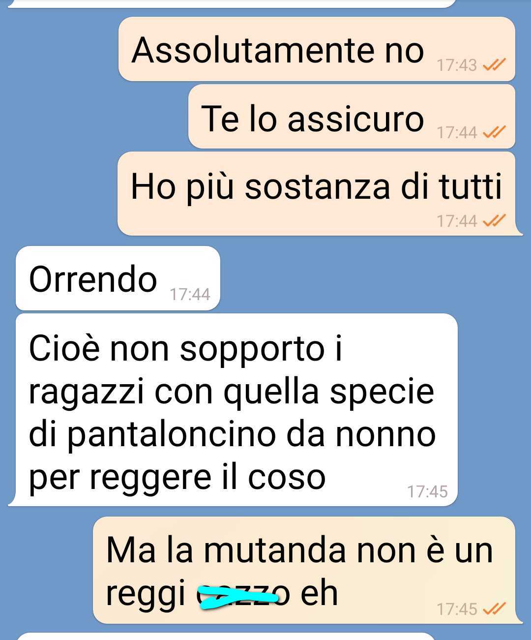 Aggiunge di non aver mai vissuto una situazione simile e di essersi sentito giudicato non per ciò che è, ma per supposizioni legate a stereotipi. In particolare, afferma che il confronto si è spostato su un terreno inaspettato, finendo per toccare argomenti legati all’intimità e alle sue presunte “misure”, questione che considera del tutto fuori luogo.