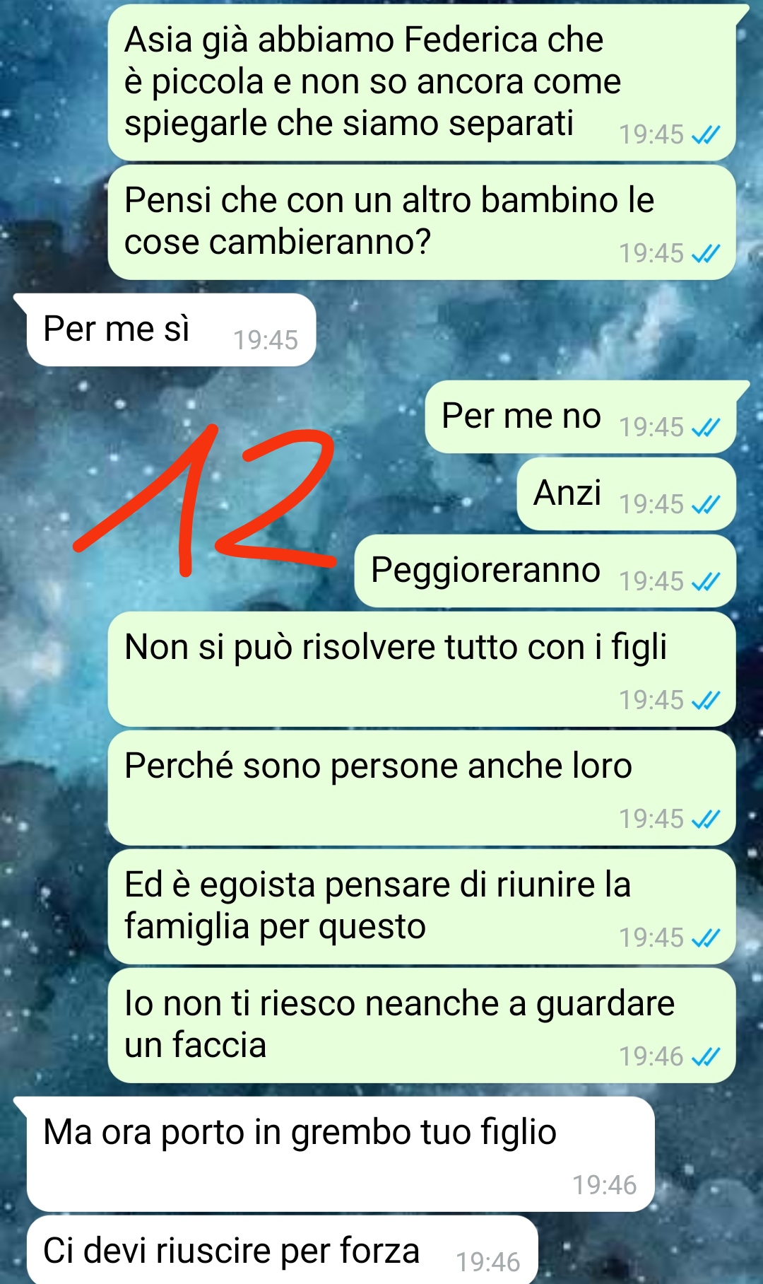 La relazione tra Gianluca e Asia, dopo la separazione, era caratterizzata da un distacco emotivo da parte di Gianluca, che trovava difficile persino comunicare con lei. Tuttavia, un cambiamento sembra essere avvenuto qualche mese fa, quando Asia gli ha inviato alcuni messaggi. Gianluca non specifica il contenuto di questi messaggi, ma lascia intendere che hanno segnato un momento significativo nella loro interazione post-separazione.