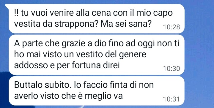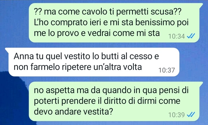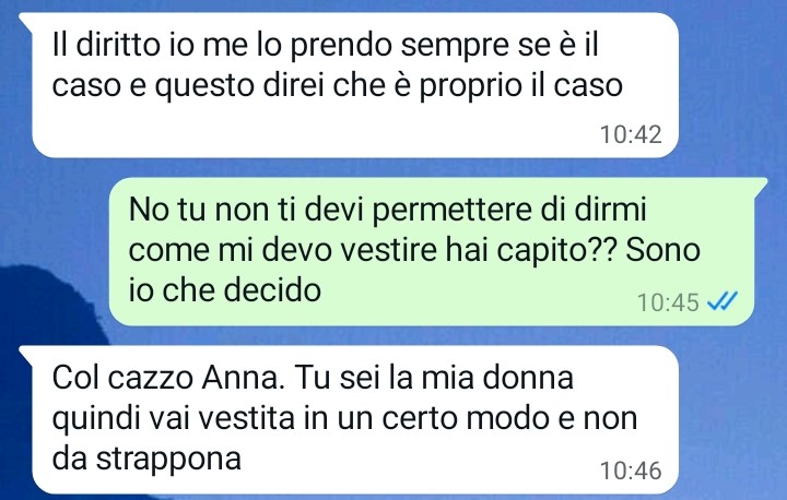 Mi chiamo Anna e mi ritrovo qui a scrivervi perché ho appena scoperto di stare con una persona terribile e incommentabile e me ne sono accorta dopo un anno e mezzo insieme. Io e il mio compagno ci siamo innamorati a prima vista, tra noi è stato subito fortissimo tanto che dopo 4 mesi abbiamo deciso di andare a convivere da me. Ad oggi dico che ho sbagliato perché mi sono resa conto di non conoscere ancora per niente la persona che mi sta accanto e con cui condivido una casa (la mia) insieme. Leggete per favore cosa è successo tra noi poco fa in chat e capirete tutto. Che schifezza.