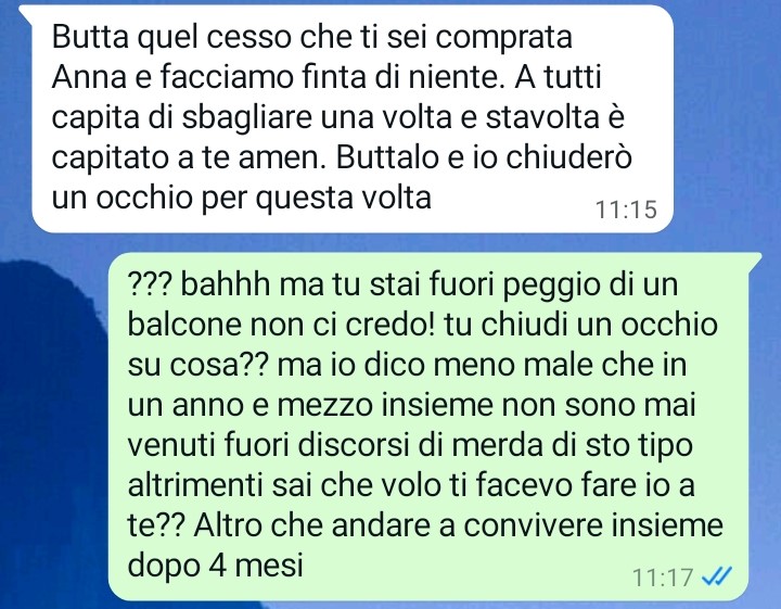 La nostra amica, visibilmente scossa, invita chi legge a soffermarsi su una conversazione avvenuta poco prima in chat con il suo compagno. È proprio quel dialogo a farle aprire gli occhi. Non entra nei dettagli precisi della conversazione, ma lascia intendere che le parole scambiate siano state tanto gravi da farle cambiare radicalmente idea sulla persona con cui condivide la sua vita.