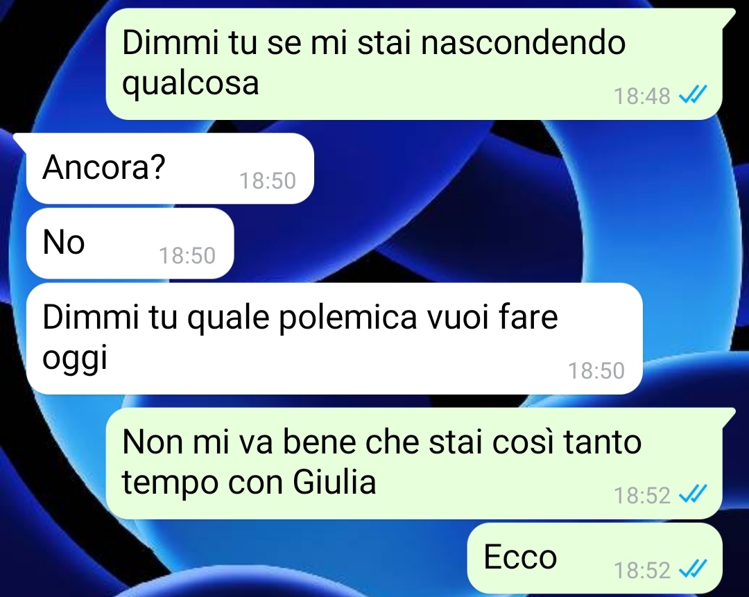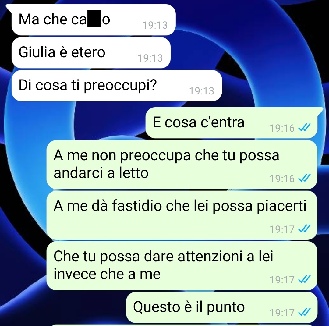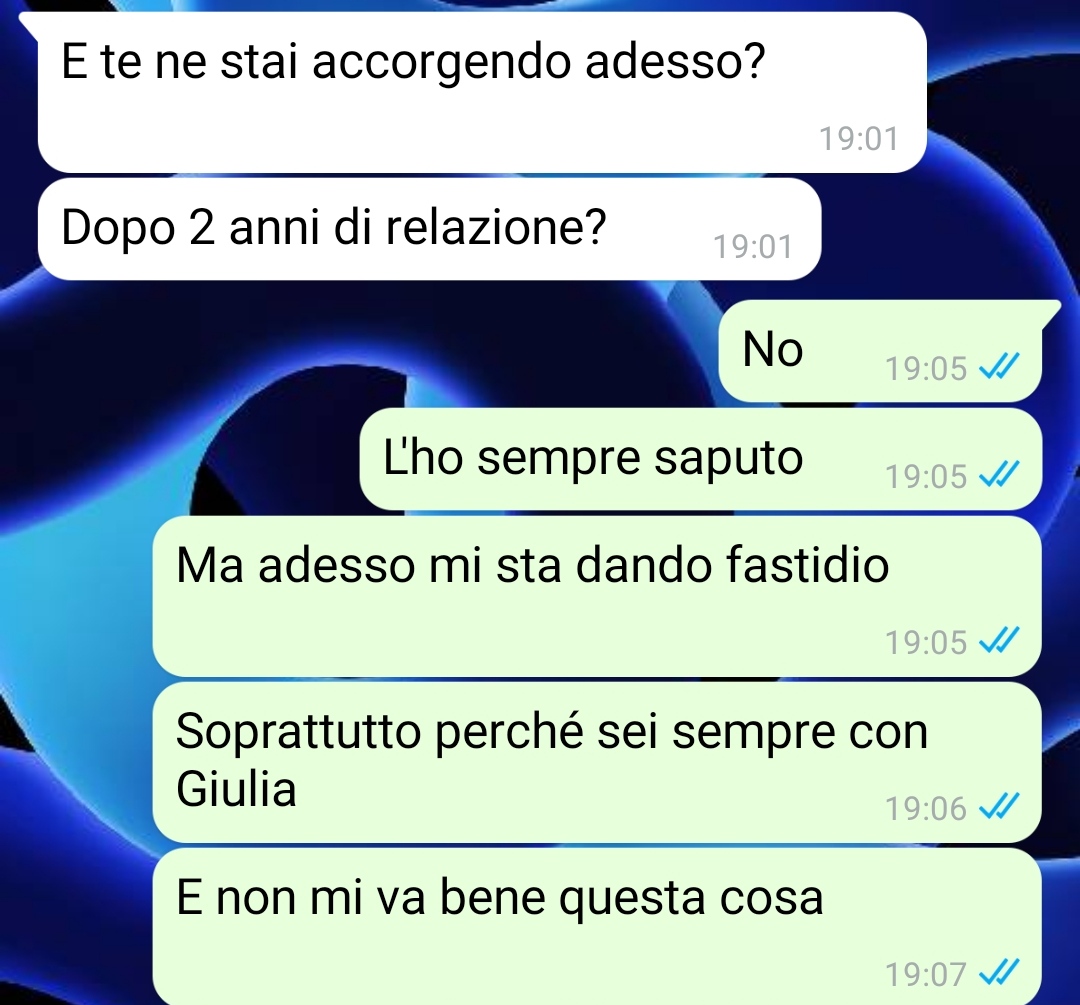 Fin dall’inizio della relazione, il nostro follower racconta di aver accettato pienamente la personalità della sua compagna: i suoi gusti, le sue preferenze, il suo modo di essere. Precisa che nulla di ciò lo ha mai spaventato o infastidito, anzi, afferma di essersi sempre mostrato aperto e rispettoso verso di lei.