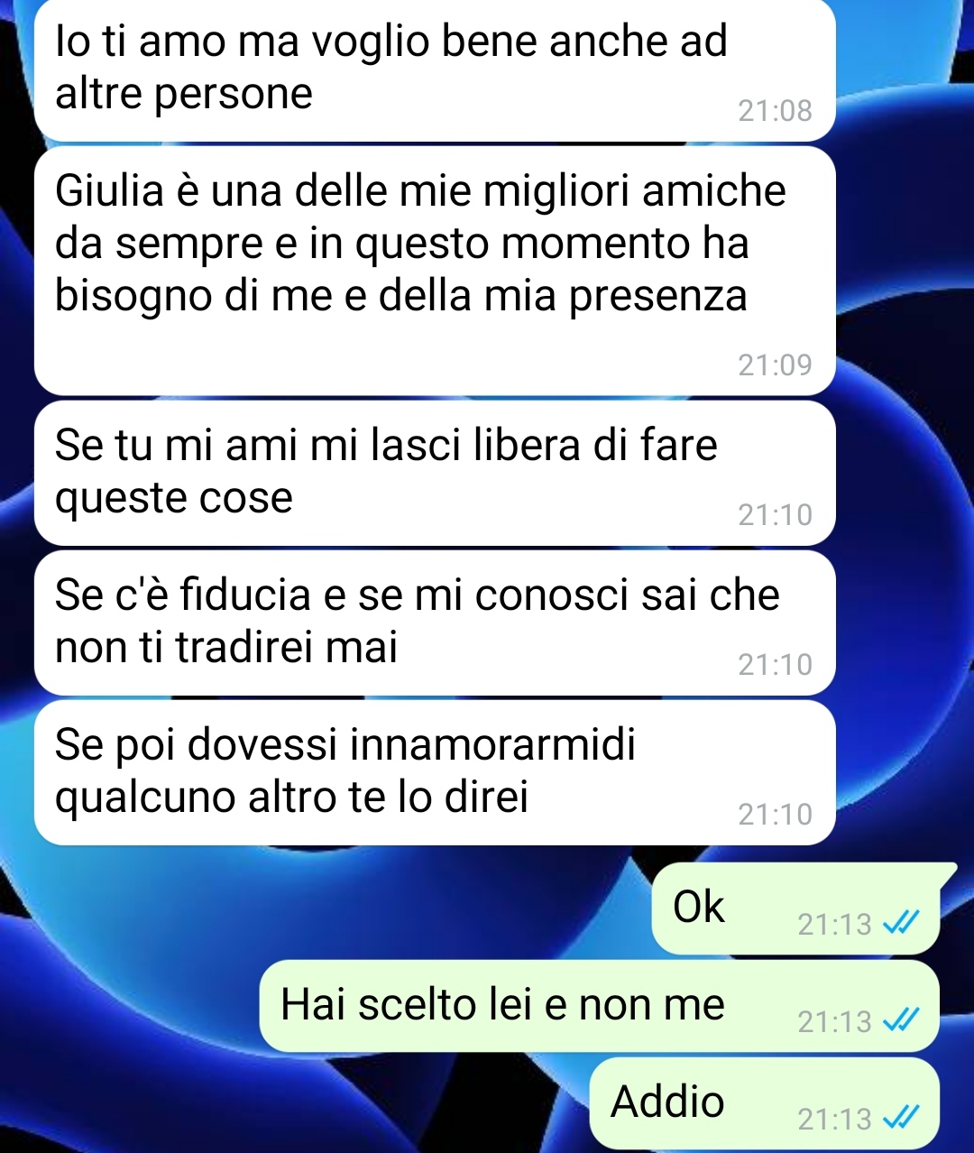 La nostra fan aggiunge infine che la sua ragazza ha definito il suo atteggiamento “ossessivo” e “possessivo”, mentre lui sostiene di agire esclusivamente con l’intenzione di tutelare la serenità della coppia. Ritiene che le sue parole e i suoi comportamenti siano guidati dal desiderio di proteggere il legame affettivo, non da un bisogno di controllo.