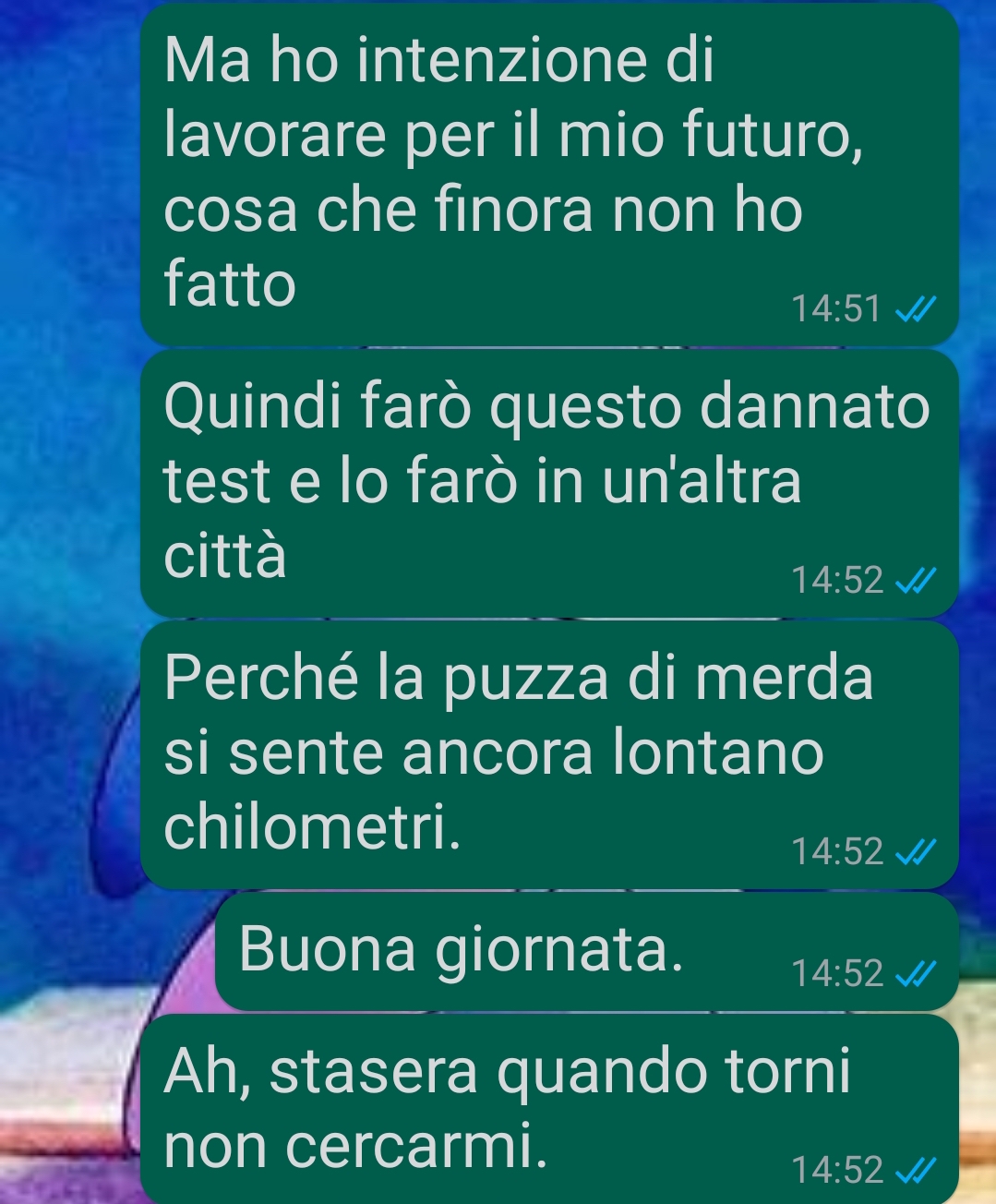 La conversazione che ha tanto turbato la nostra amica è avvenuta proprio mentre discutevano del suo progetto universitario. Sara si prepara a condividere le parole che Pietro le ha rivolto in quella circostanza, evidentemente così scioccanti da spingerla a contattare Commenti Memorabili per raccontare la sua esperienza.