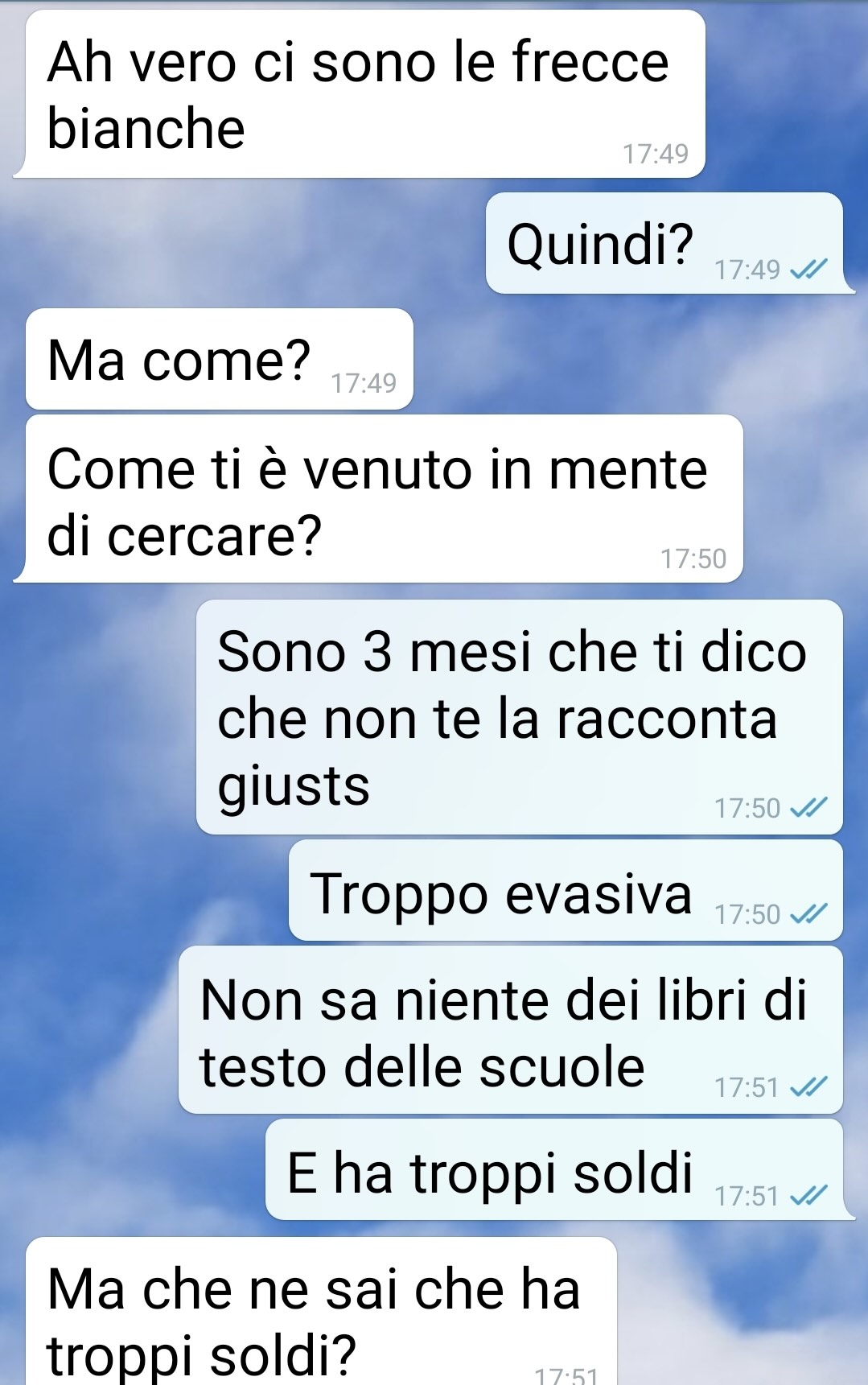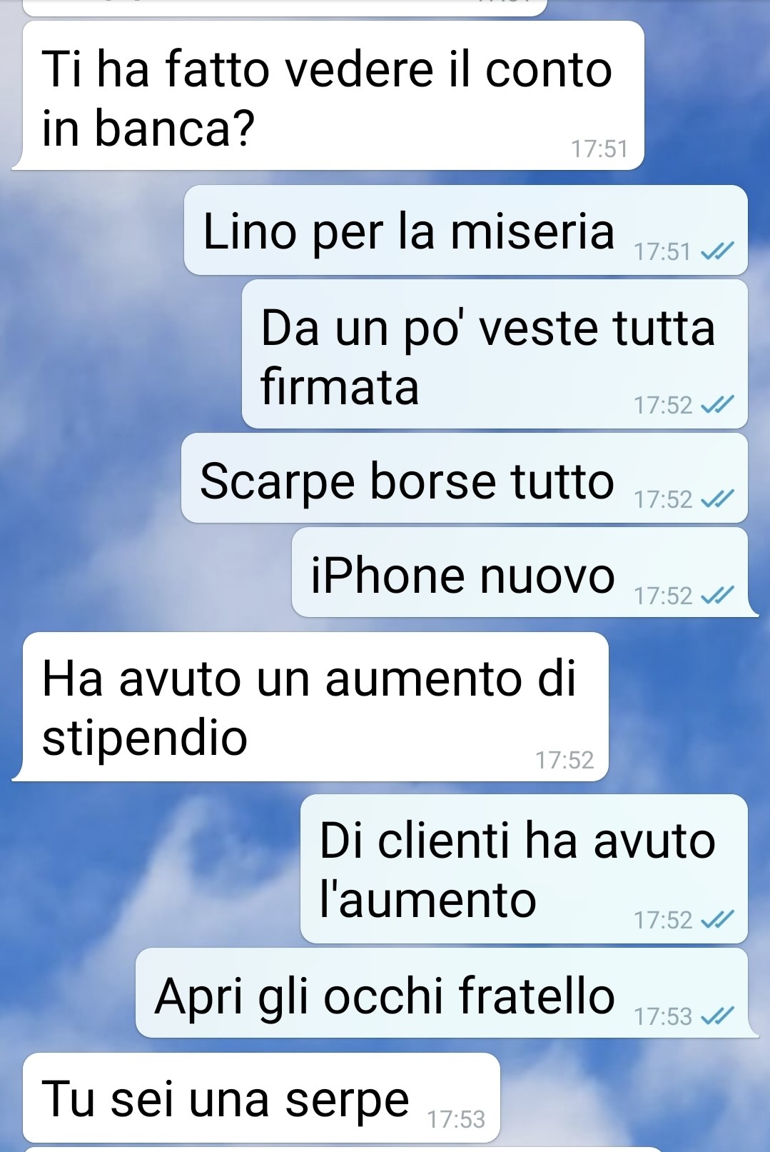 Annamaria ha deciso di inviare questa conversazione tra lei e suo fratello Lino per condividere con voi una vicenda che l’ha lasciata senza parole. La terza protagonista della storia, pur non scrivendo nella chat, è Cinzia, la fidanzata di Lino.