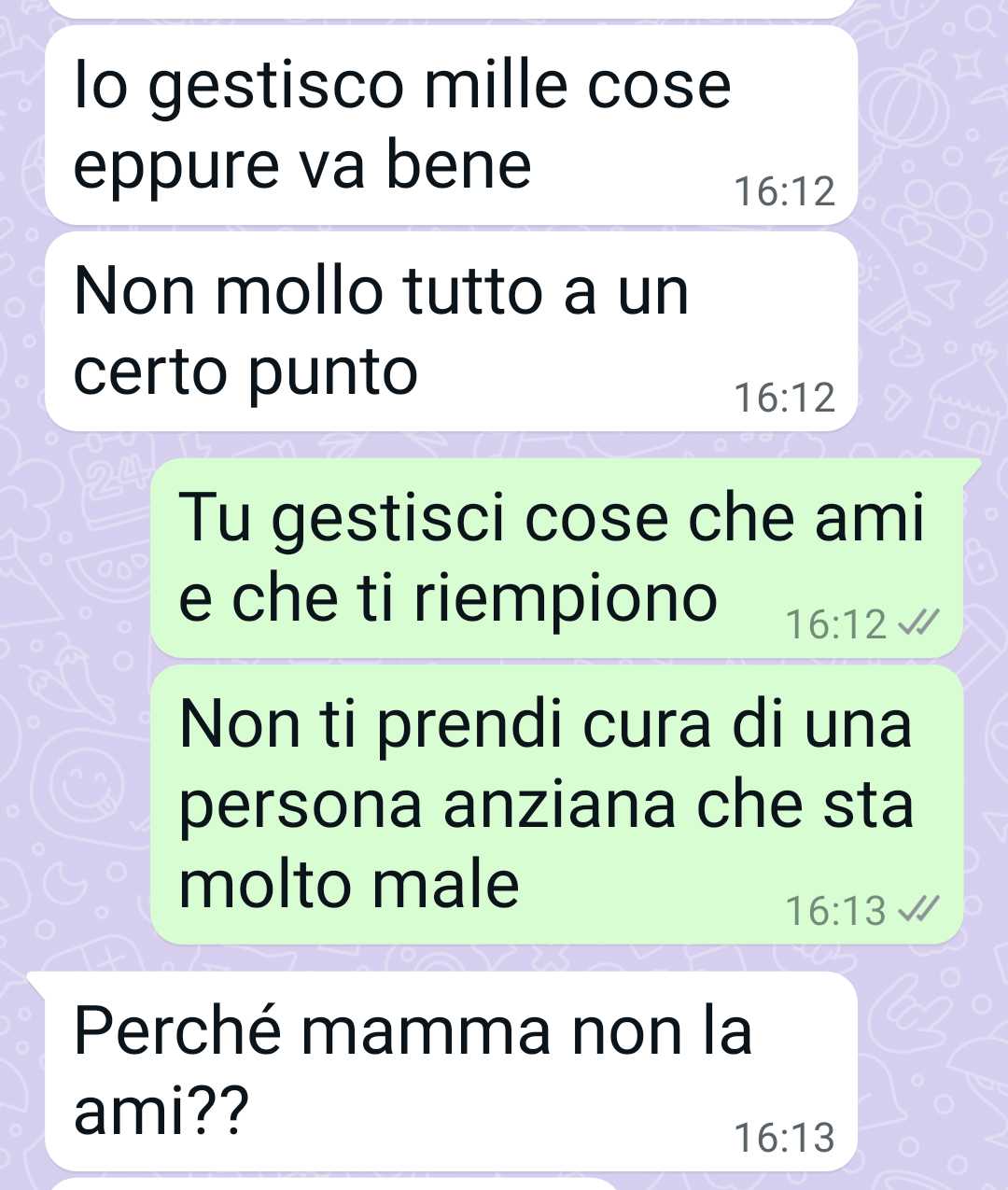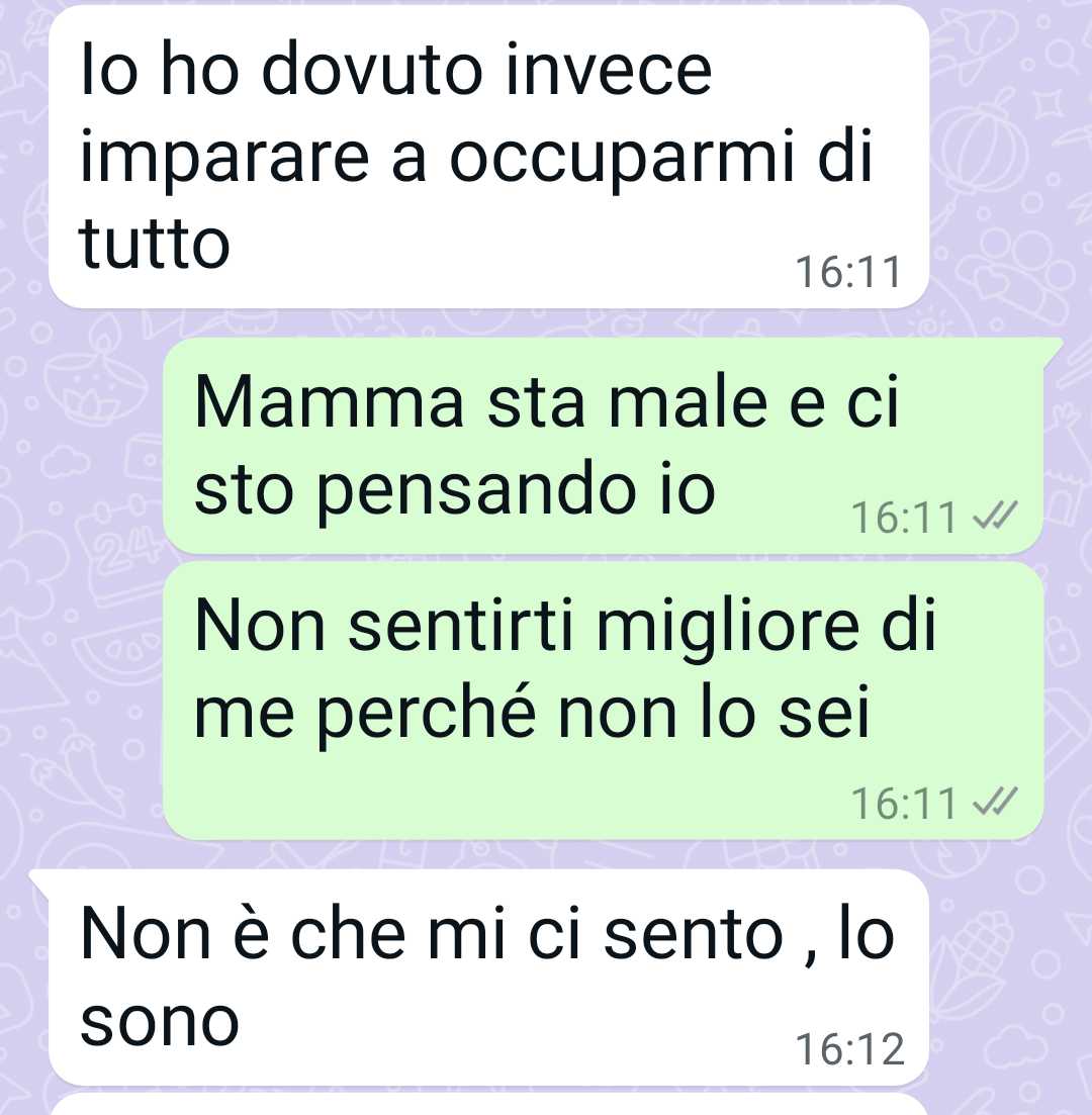 Scrive queste righe per cercare conforto, per trovare uno spazio in cui sentirsi ascoltata. Ammette che forse non è il luogo più adatto per sfogarsi, ma in questo momento non ha altri punti di riferimento. Le sue parole sono un grido sommesso di chi, dopo aver dato tutto, sente di non avere più energie nemmeno per spiegare quanto stia soffrendo.