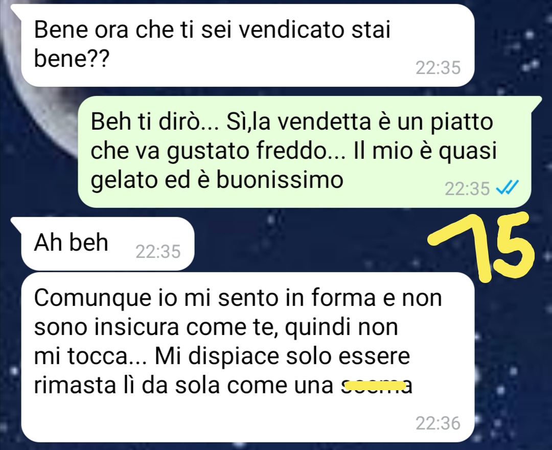 Il nostro follower conclude spiegando di essere consapevole che non tutti saranno d’accordo con ciò che leggeranno nella chat, ma ritiene importante condividere la sua esperienza per mostrare quanto sia fondamentale rispettare i propri limiti e quelli degli altri, anche quando si è convinti che un incontro possa andare in una direzione diversa, invitando chi legge a riflettere sull’importanza del consenso e della chiarezza in ogni tipo di relazione.