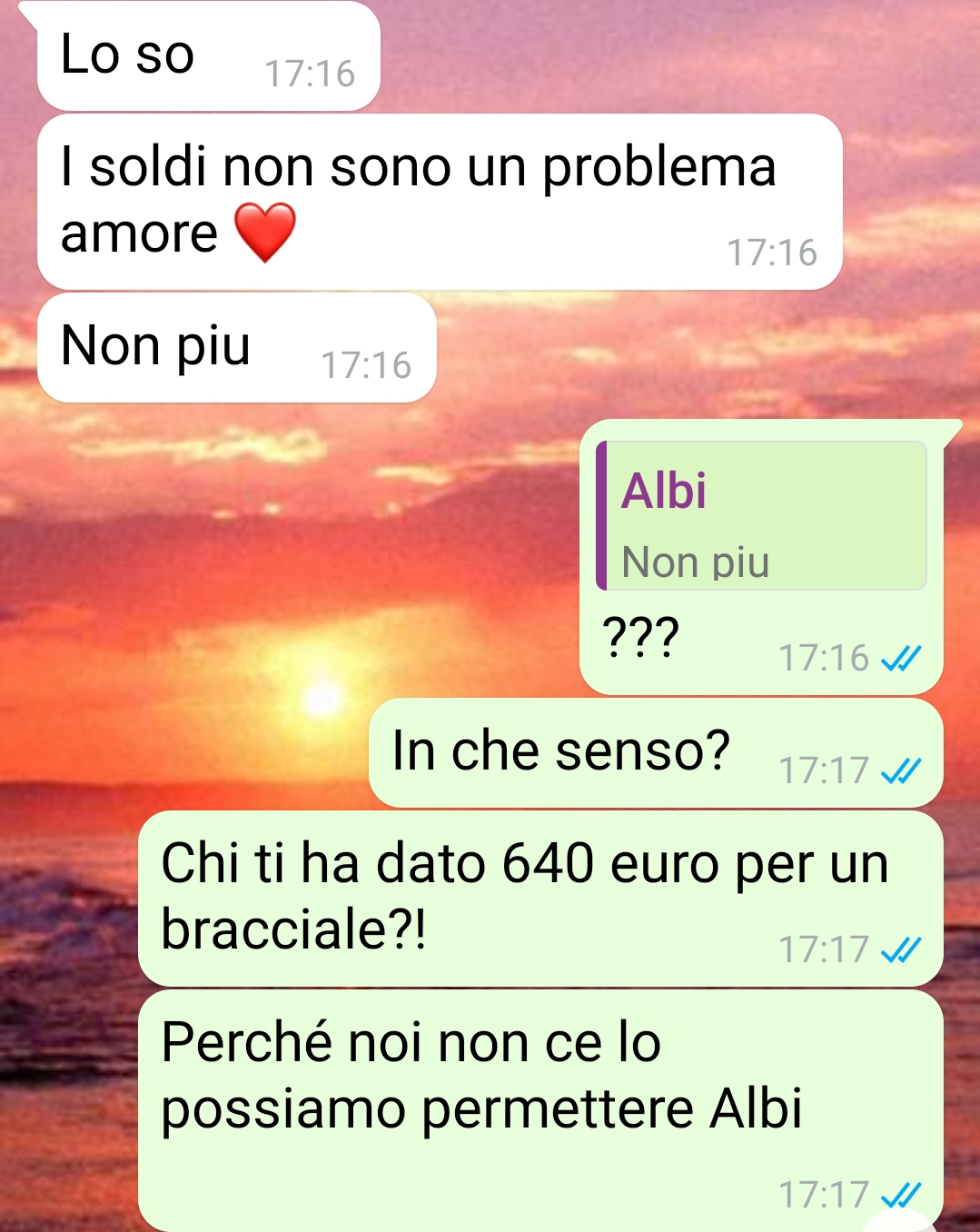 Lei e il suo compagno Alberto hanno attraversato numerose difficoltà. Da una parte, problemi economici che hanno messo alla prova la loro stabilità quotidiana; dall’altra, un rapporto complicato con la famiglia di lui, descritta come appartenente a un contesto sociale elevato e mai del tutto aperta nei suoi confronti. A tutto questo si aggiungeva la fatica, emotiva e fisica, per il desiderio di diventare genitori che sembrava non realizzarsi.