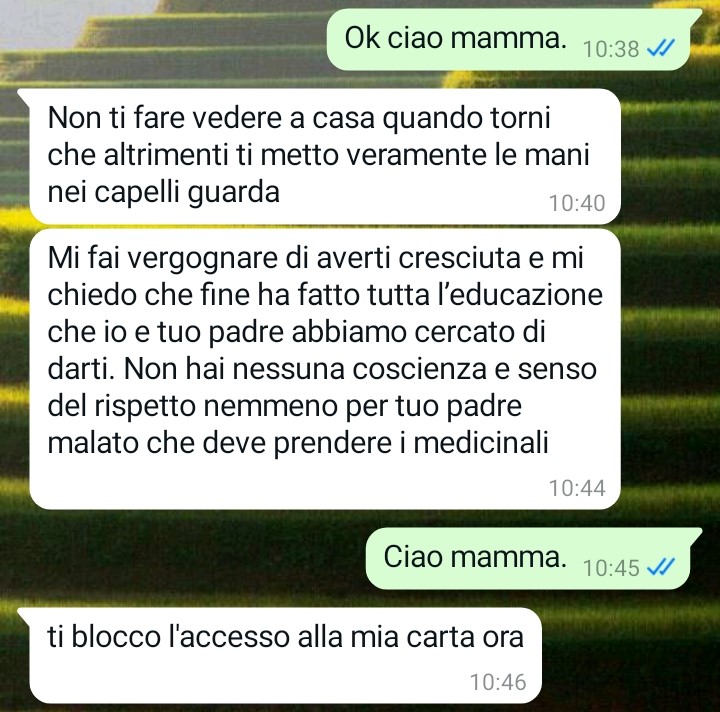 Carla racconta che, in un momento delicato della sua vita, ha cercato conforto e comprensione proprio dalla madre. Ma la risposta ricevuta l’ha lasciata senza parole. Una reazione che lei definisce scandalosa, del tutto inadeguata rispetto alla situazione e a ciò che ci si aspetterebbe da un genitore nei confronti della propria figlia. Nella conversazione condivisa, la nostra amica mostra quanto poco ascolto, empatia e vicinanza le siano stati riservati. Le parole scambiate con la madre hanno avuto per lei un impatto talmente forte da metterla in discussione non solo come figlia, ma come persona. Il tono, il contenuto e l’atteggiamento percepito l’hanno ferita, rendendole evidente un distacco emotivo che non avrebbe mai immaginato di vivere.