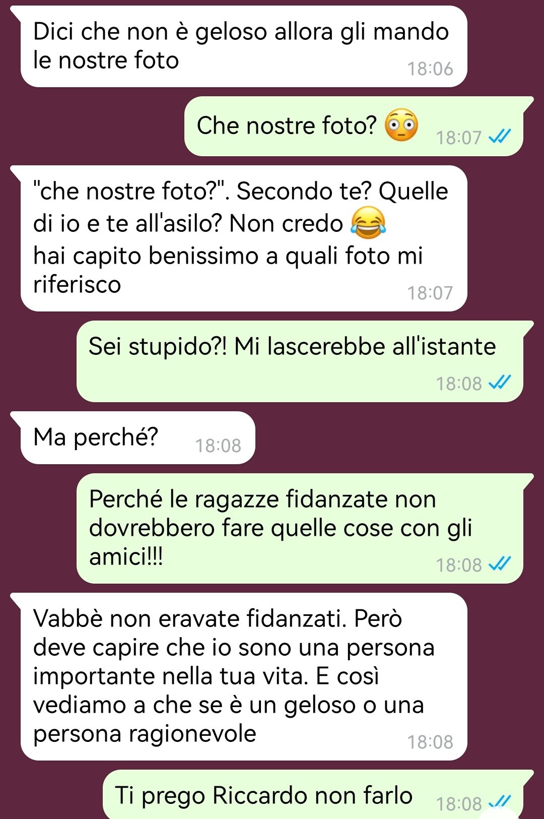 Da quel momento, spiega la nostra fan, è successo “il finimondo”. Riccardo ha reagito male alla pubblicazione della foto, sentendosi toccato e forse sostituito in un ruolo che, fino a poco tempo prima, sentiva come suo. La situazione si è rapidamente complicata, generando tensione e incomprensioni.